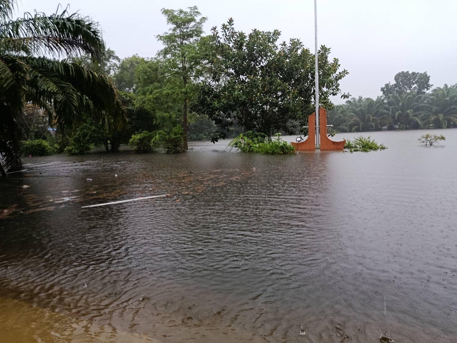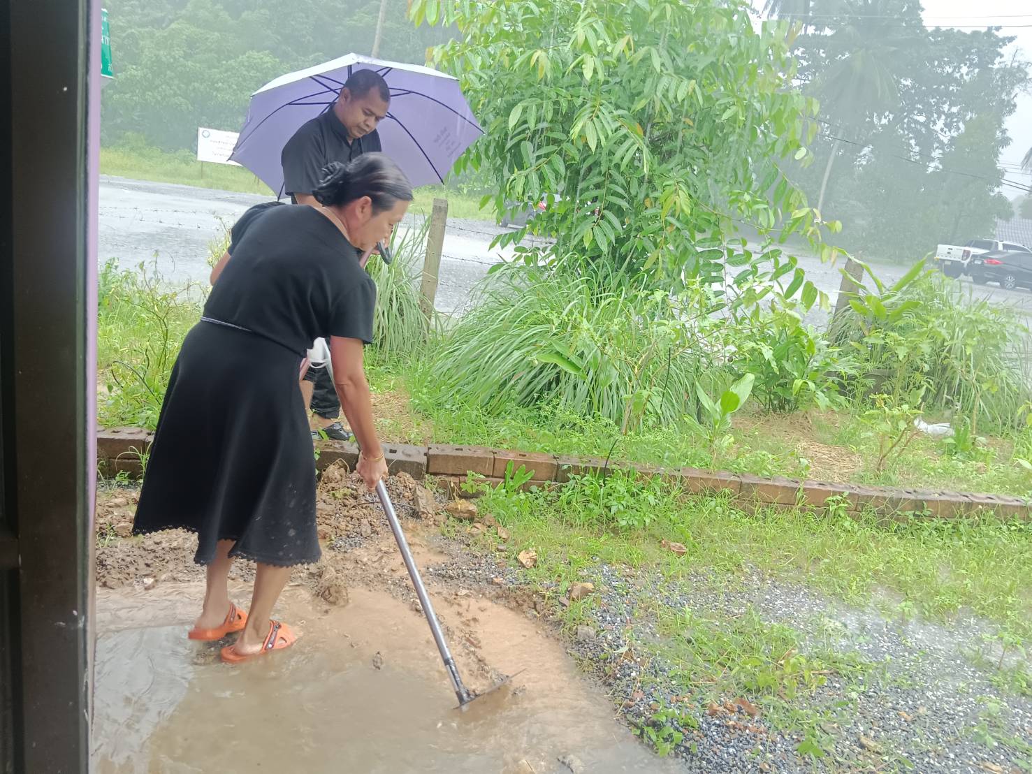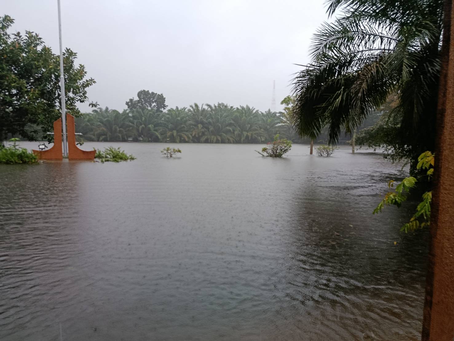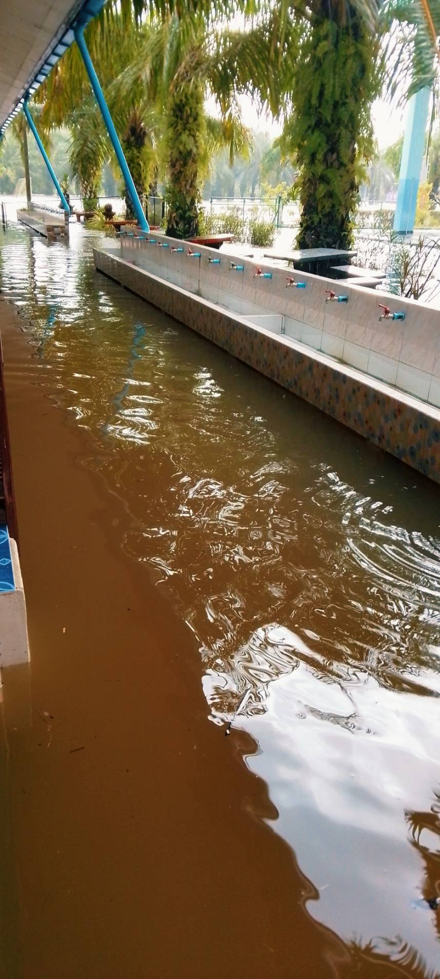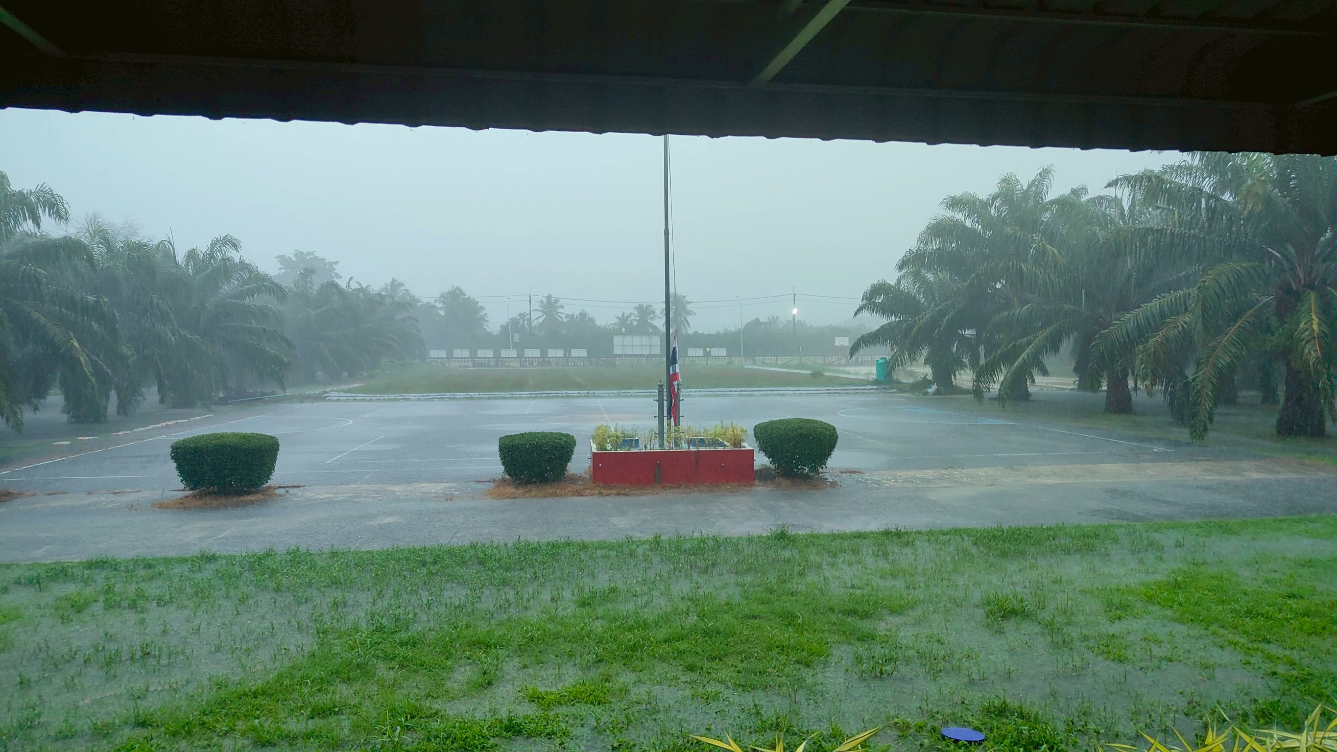 ฝนตกต่อเนื่อง มีน้ำท่วมขังบริเวณหน้าโรงเรียน อาคารเรียน น้ำเข้าห้องเรียน ห้องสมุด ห้องวิทยาศาสตร์ ห้องประชุม