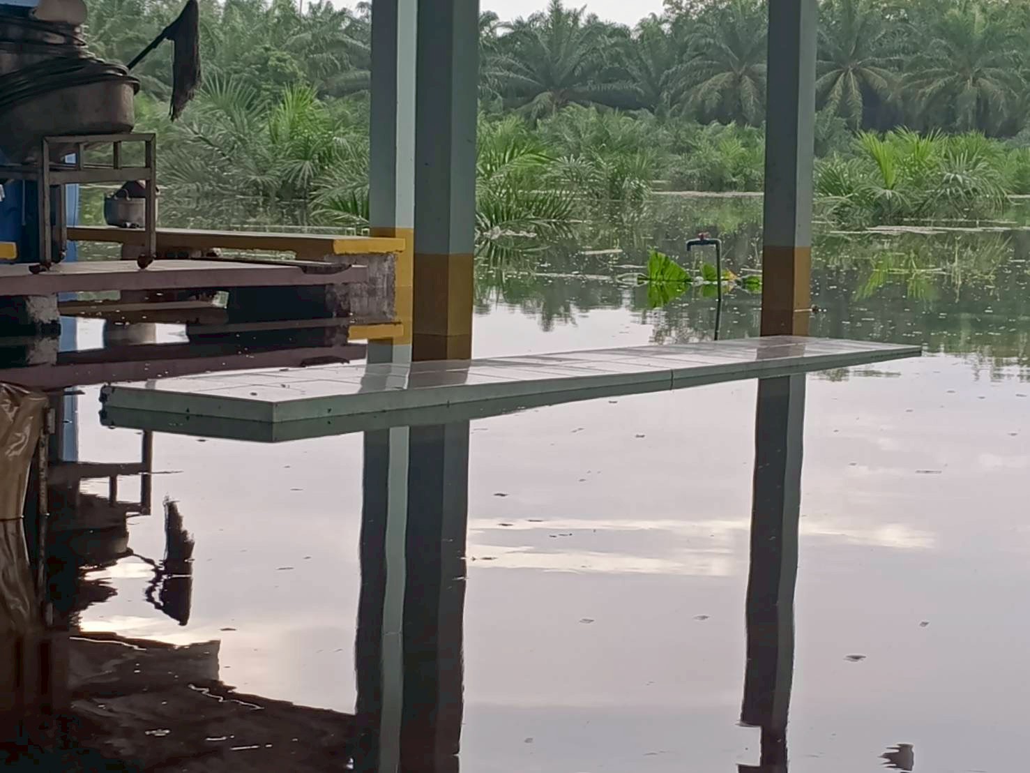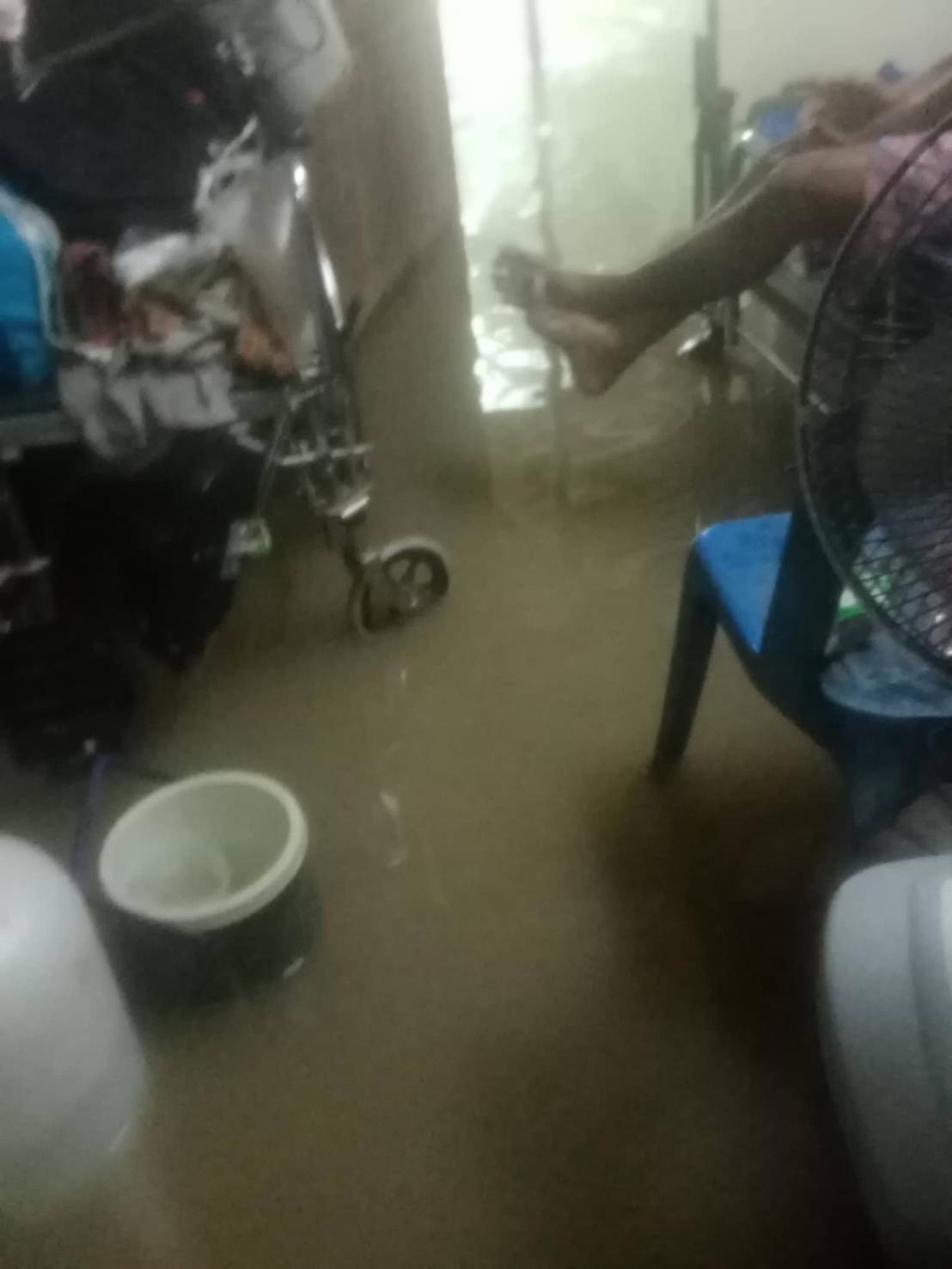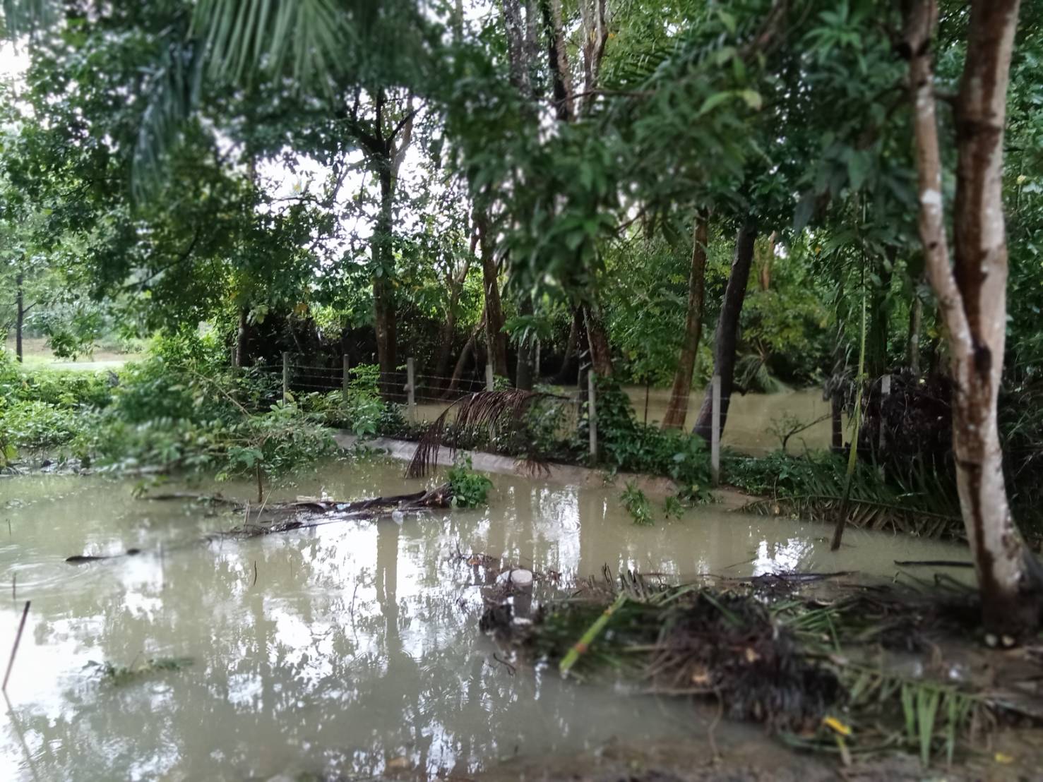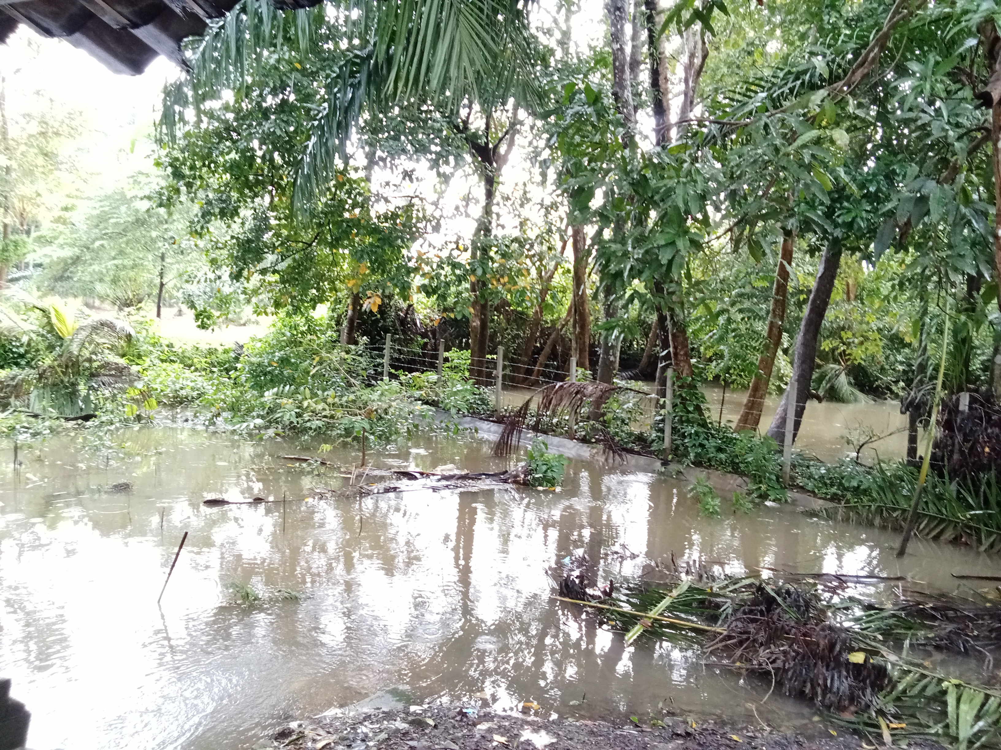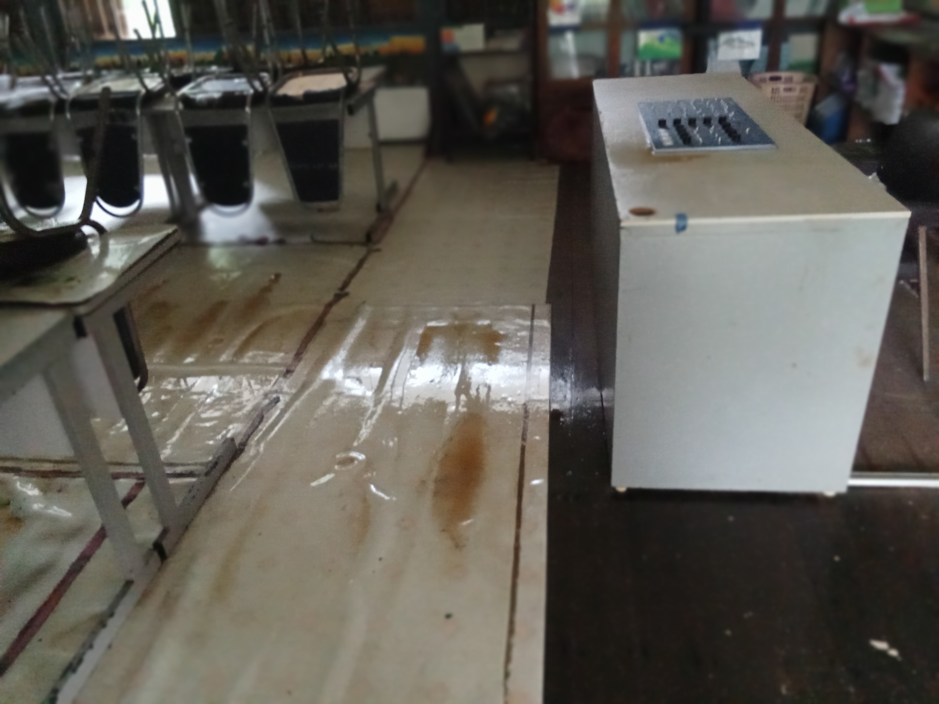 ฝนตกต่อเนื่อง มีน้ำท่วมขังบริเวณหน้าโรงเรียน อาคารเรียน น้ำเข้าห้องเรียน ห้องสมุด ห้องวิทยาศาสตร์ ห้องประชุม