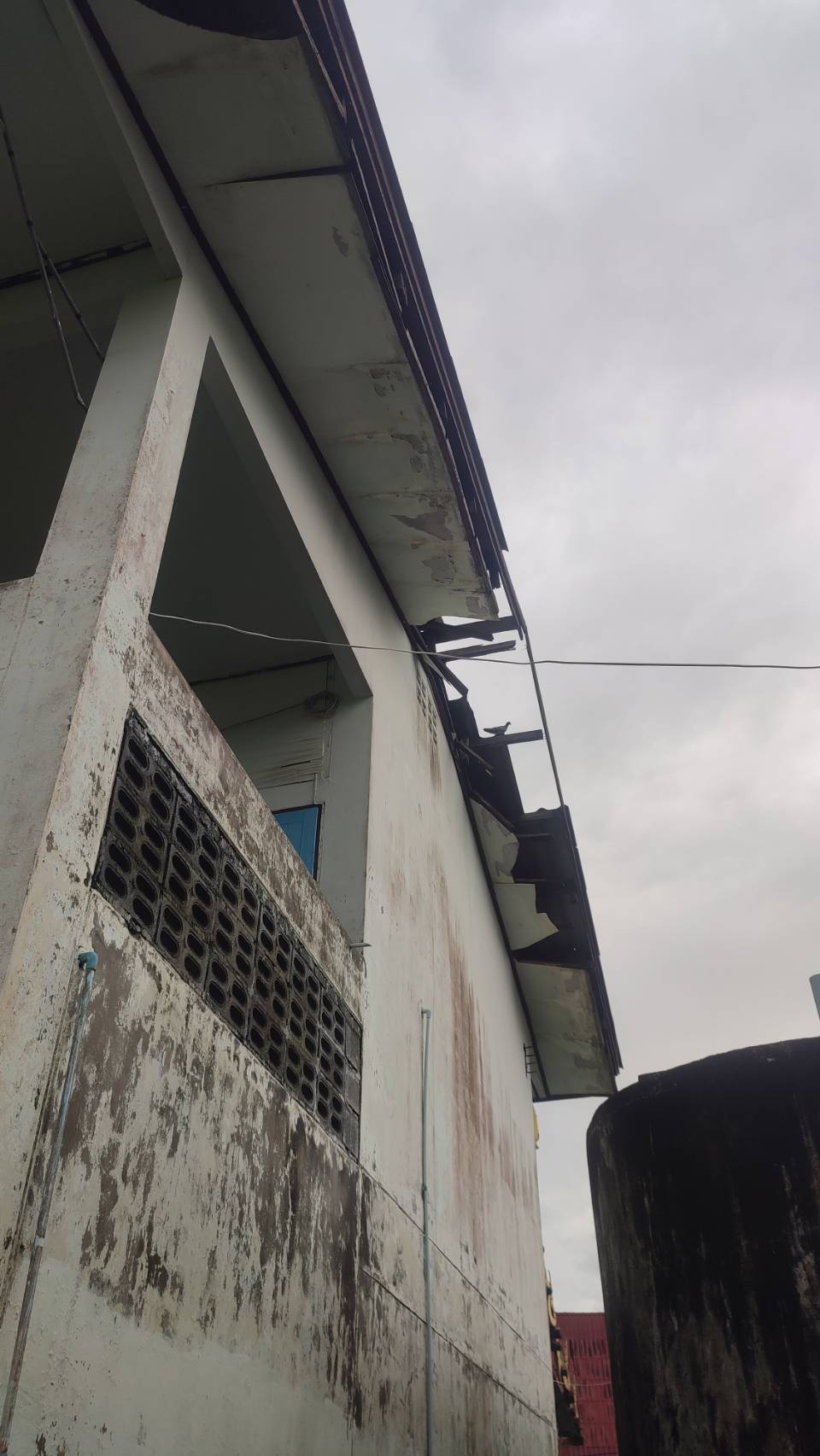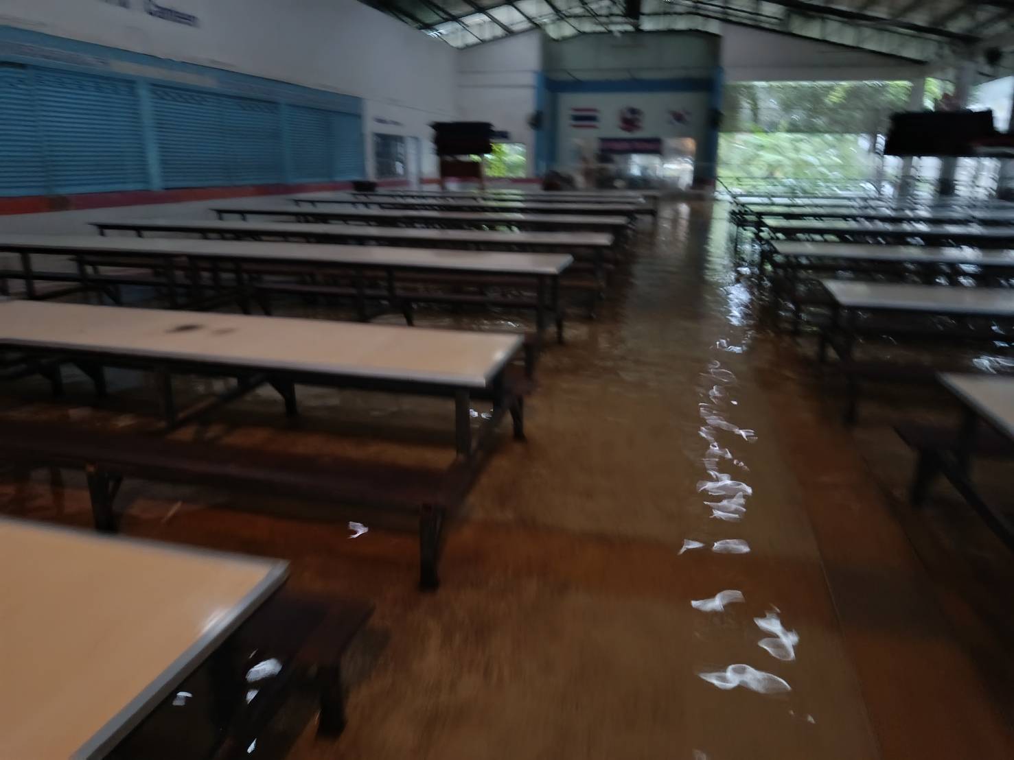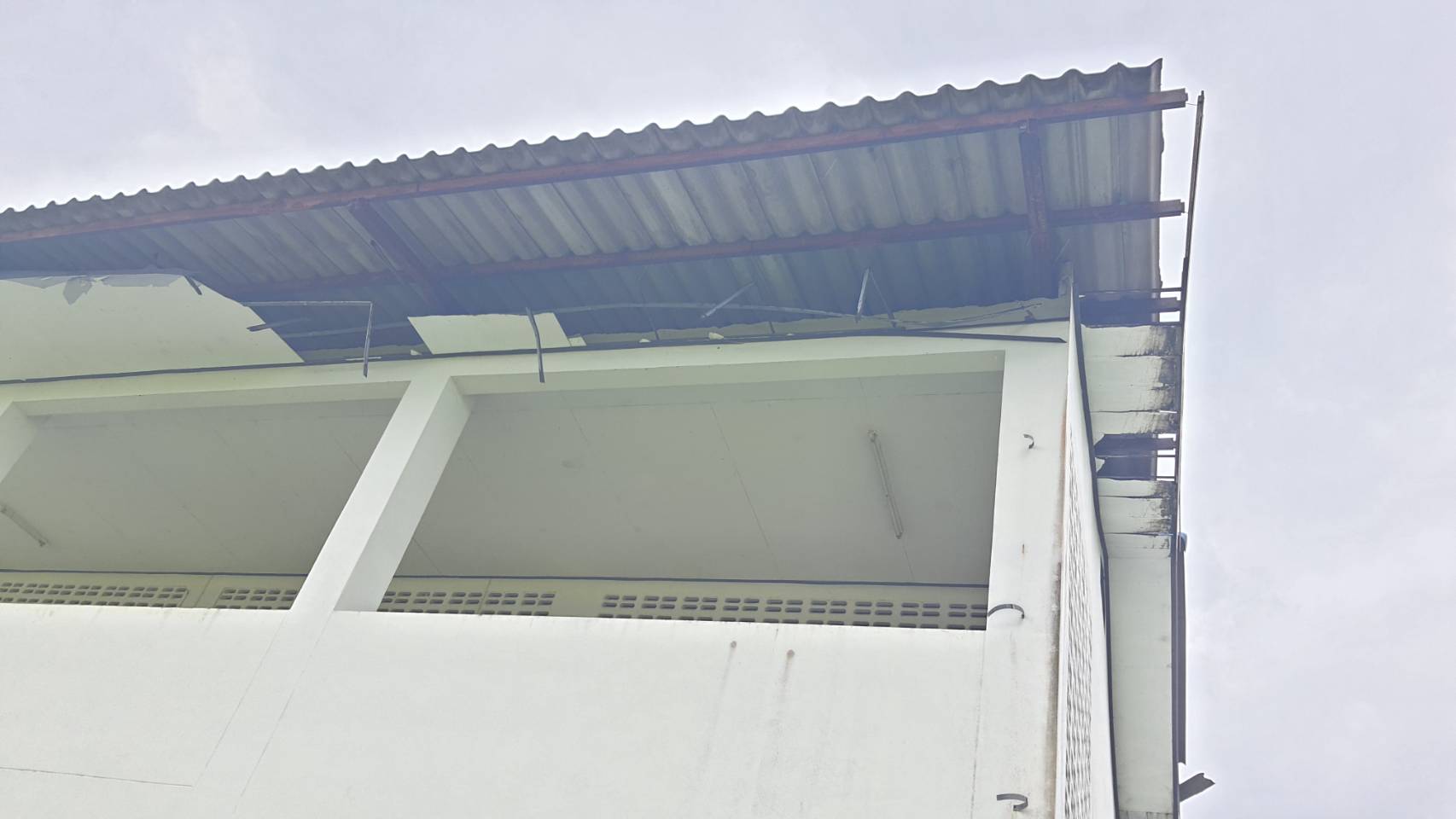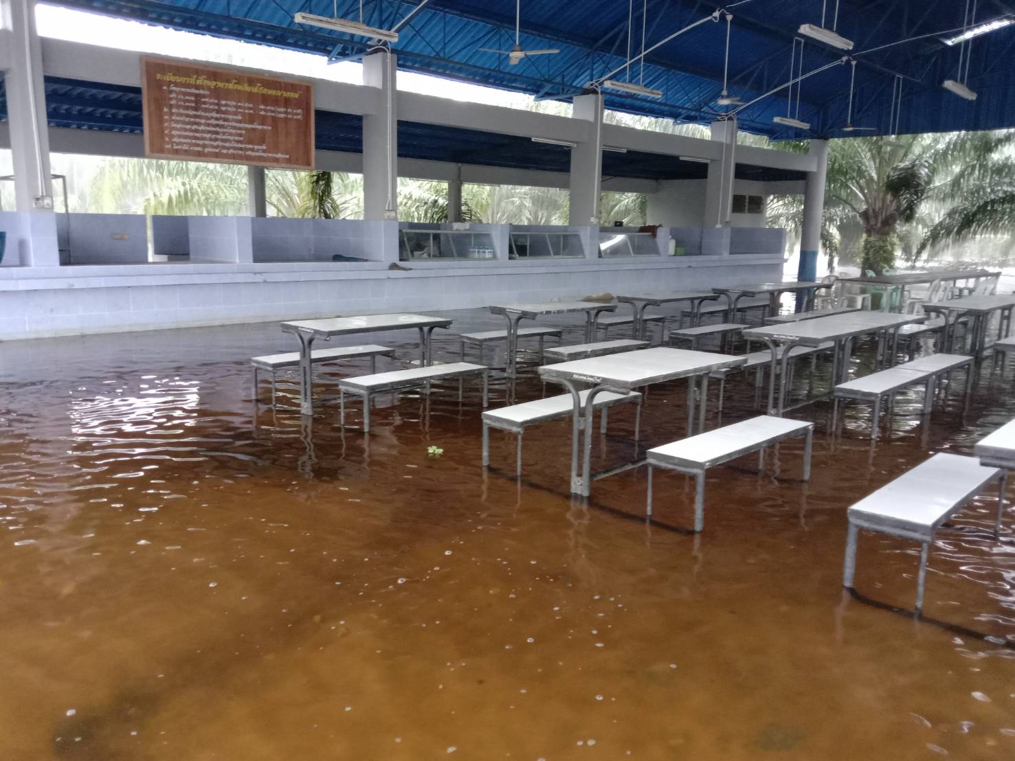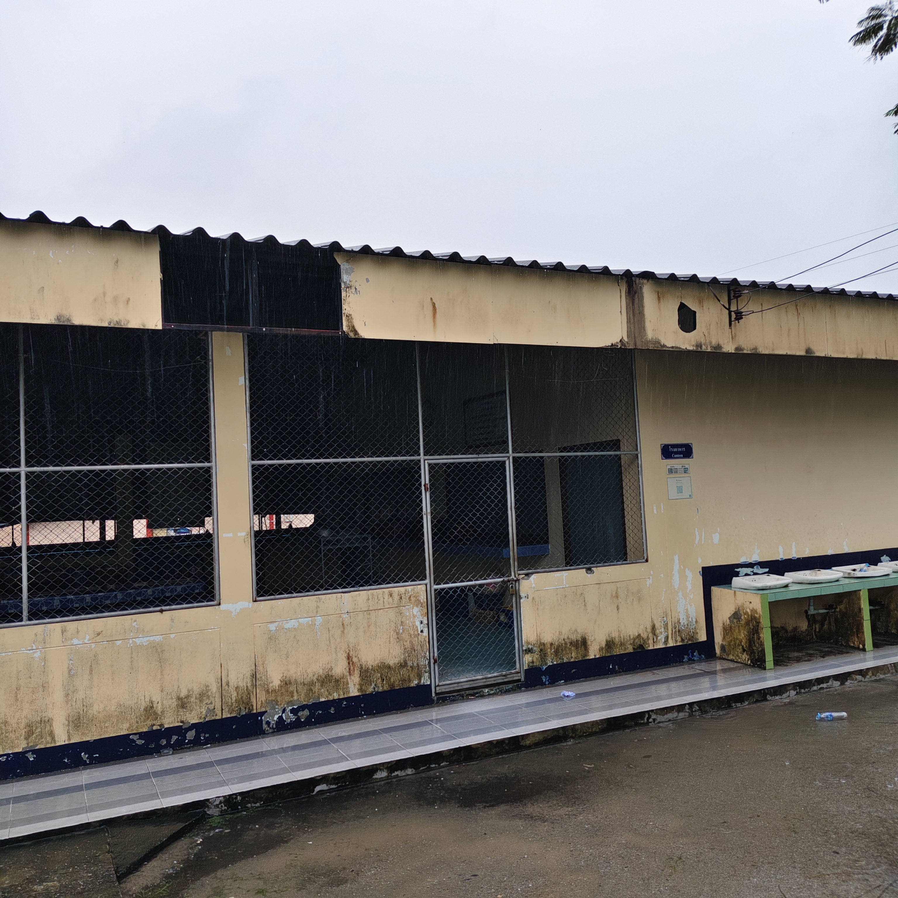 **ทั้งนี้ ฝนที่ตกหนักและลมพัดแรงยังส่งผลให้หลังคาโรงอาหารได้รับความเสียหายเปิดออก และพื้นอาคารเกิดการทรุดตัวเป็นบริเวณกว้าง