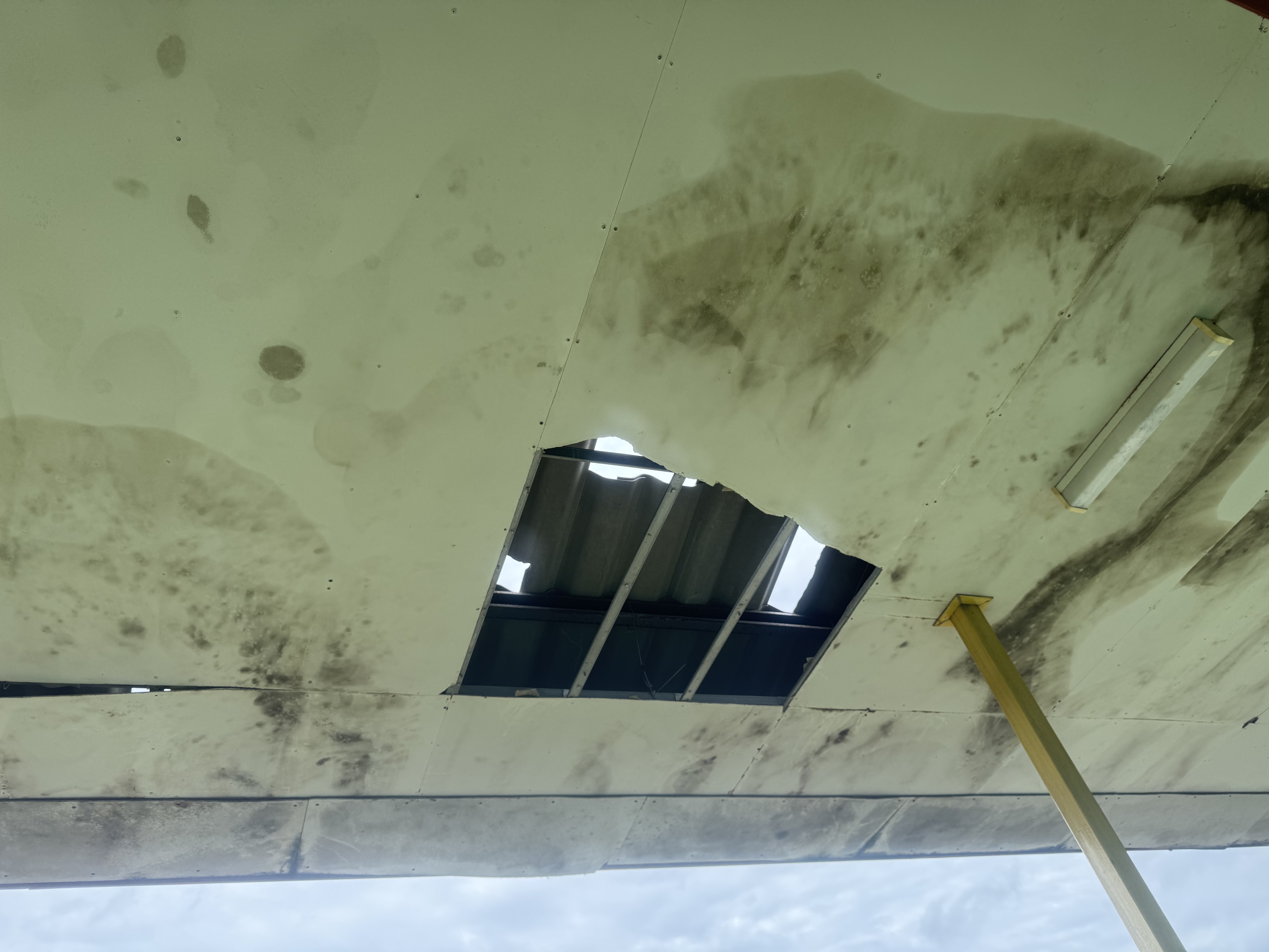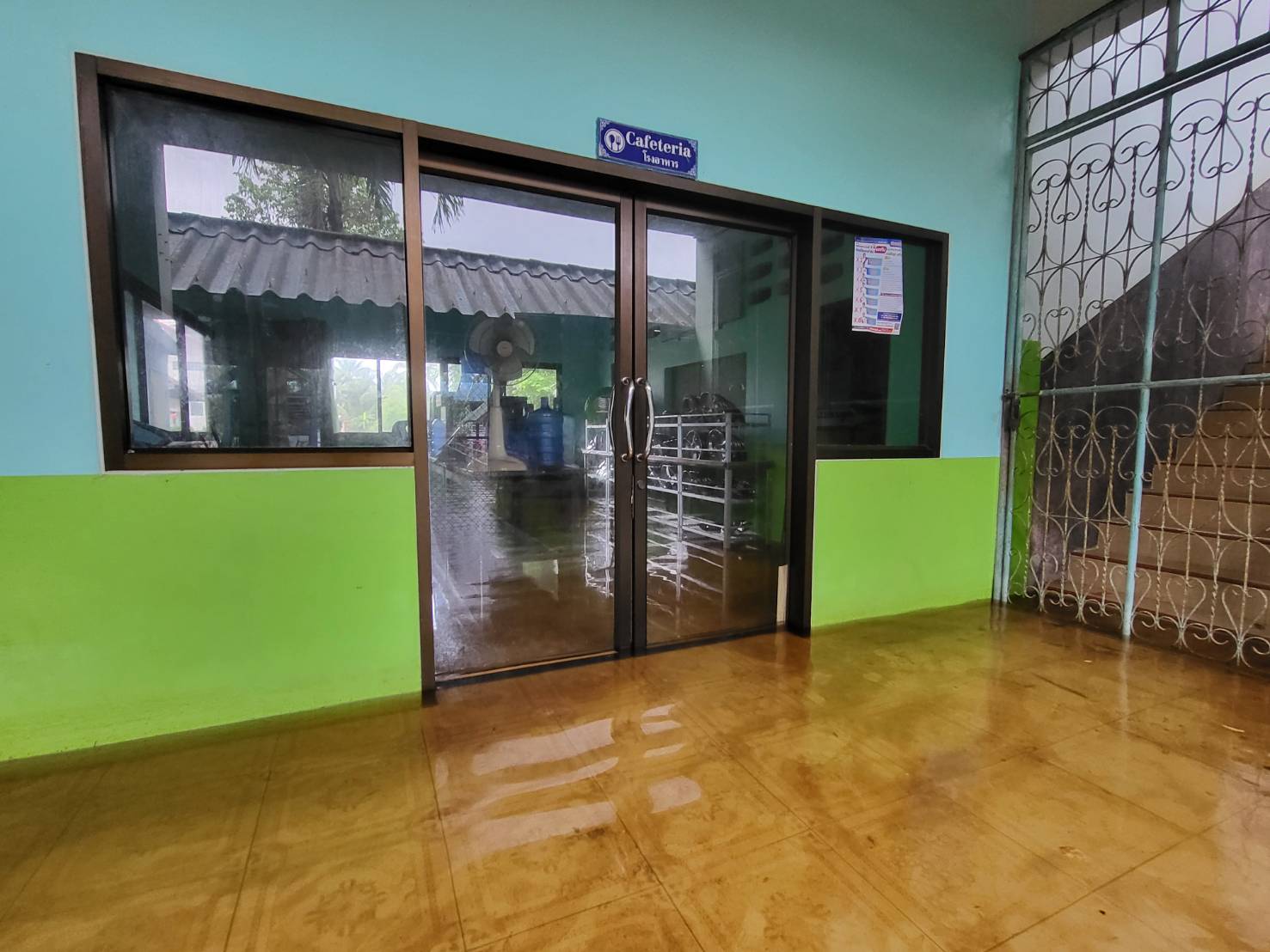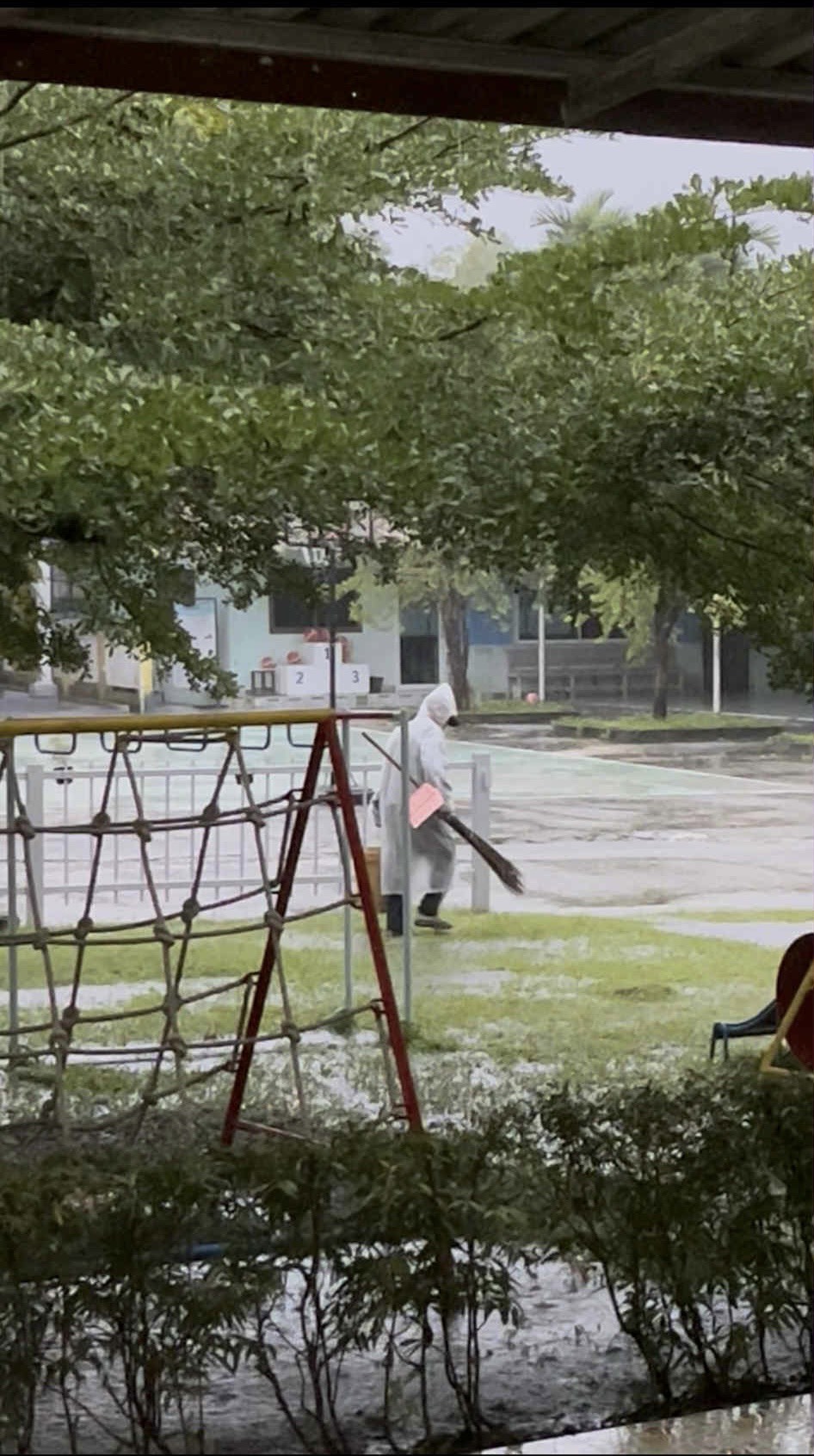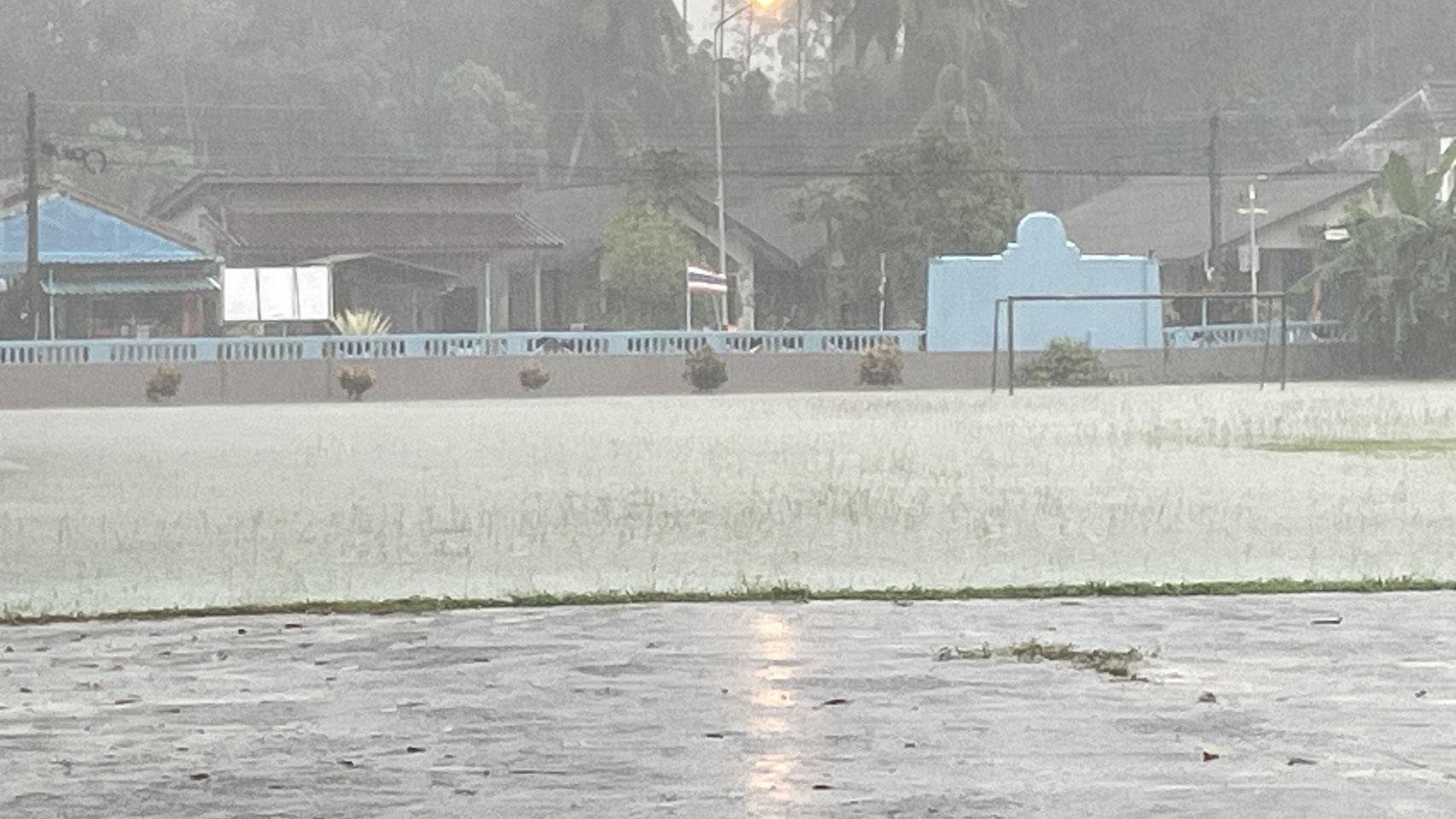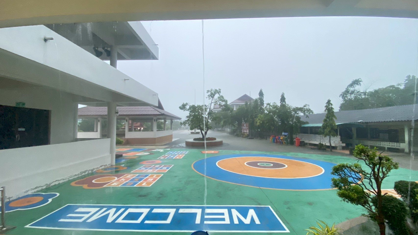 **ทั้งนี้ ฝนที่ตกหนักและลมพัดแรงยังส่งผลให้หลังคาโรงอาหารได้รับความเสียหายเปิดออก และพื้นอาคารเกิดการทรุดตัวเป็นบริเวณกว้าง
