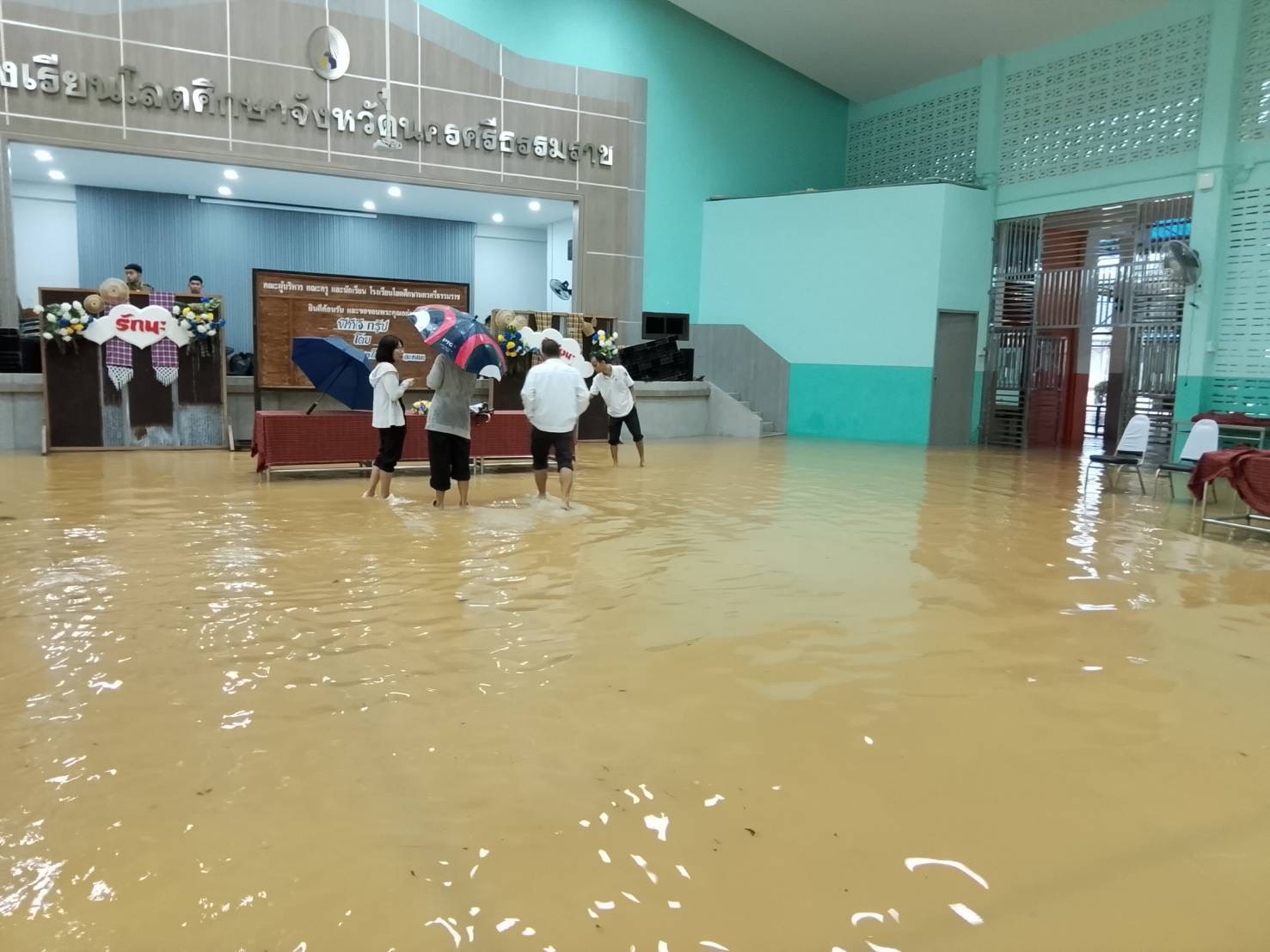 | 12 | โสตศึกษาจังหวัดนครศรีธรรมราช สำนักงานการศึกษาพิเศษ | สถานการณ์ :- 1. ขณะนี้มีฝนตกหนักและน้ำท่วมขังหลายจุดภายในบริเวณโรงเรียน ทั้งบริเวณลานอเนกประสงค์ หน้าอาคารเรียน อาคารฝ่ายบริหาร และพื้นที่โดยรอบ ระดับน้ำเพิ่มสูงขึ้นอย่างต่อเนื่อง
