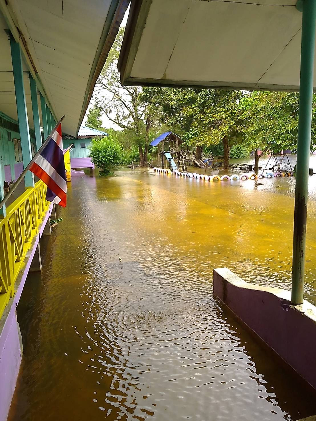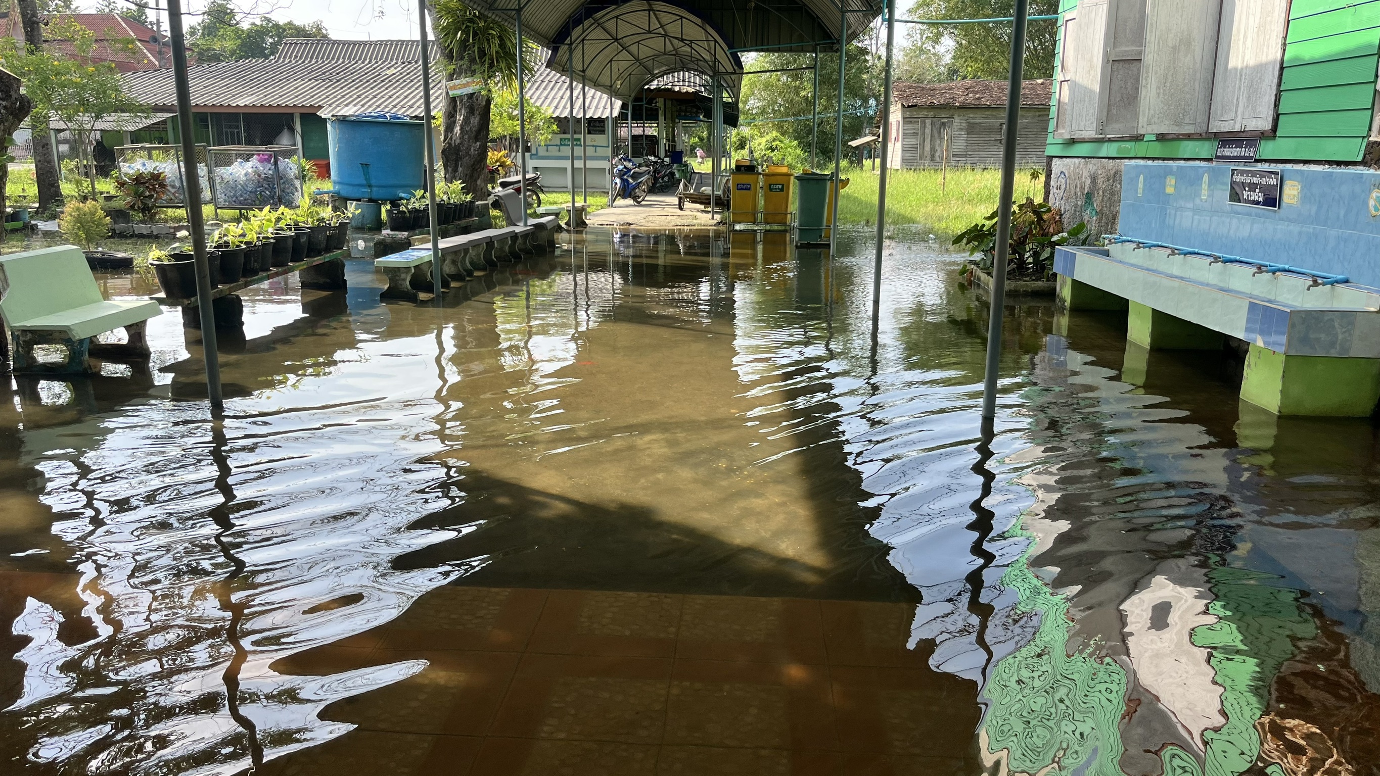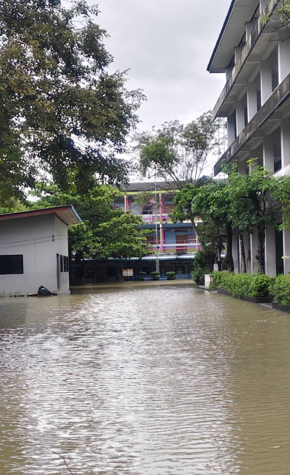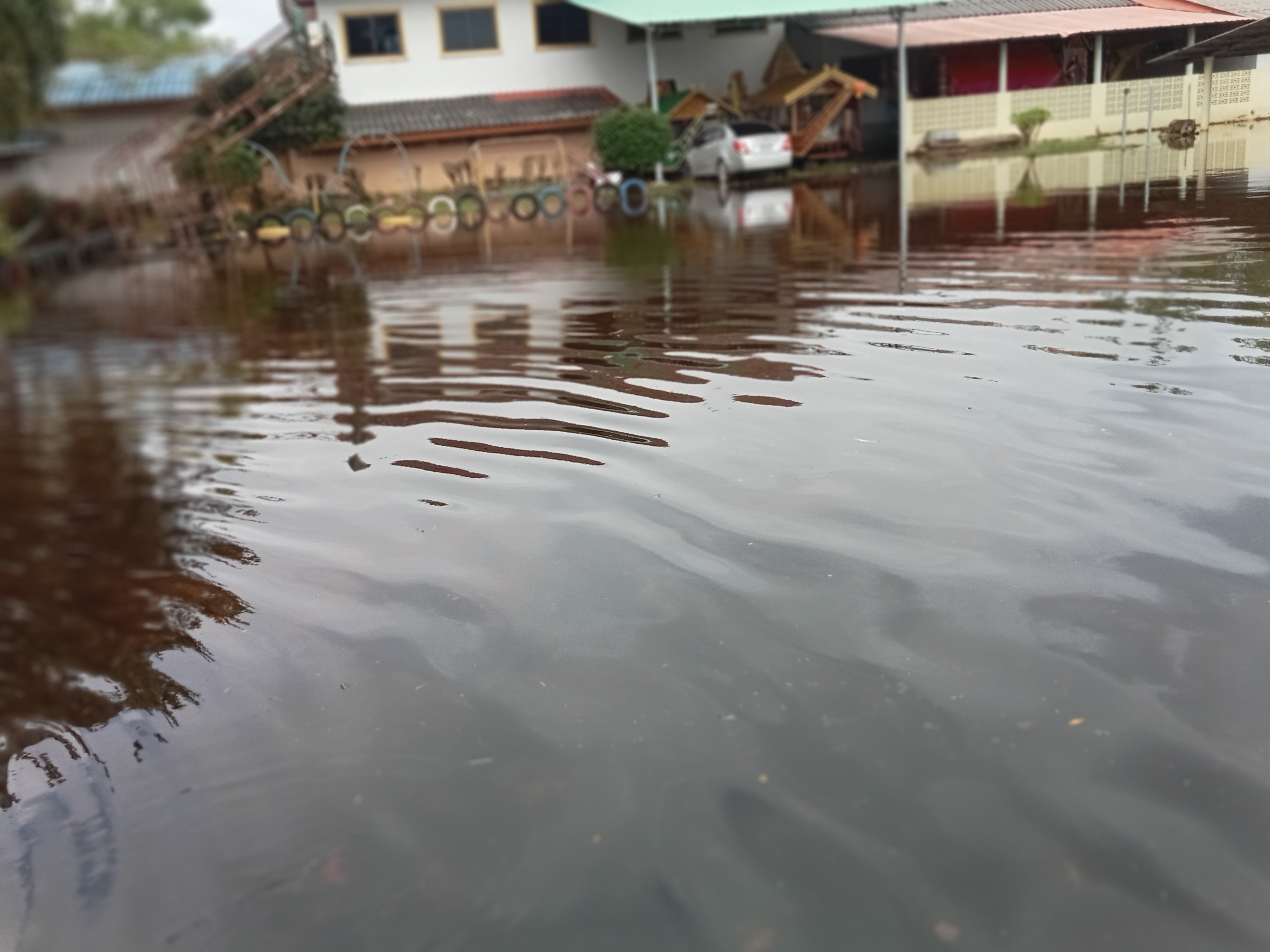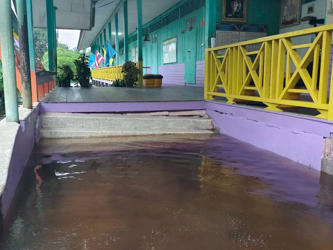 3. ถนนและทางเดินภายในโรงเรียนมีระดับน้ำสูง รถเล็กไม่สามารถสัญจรภายในโรงเรียนได้ในหลายพื้นที่