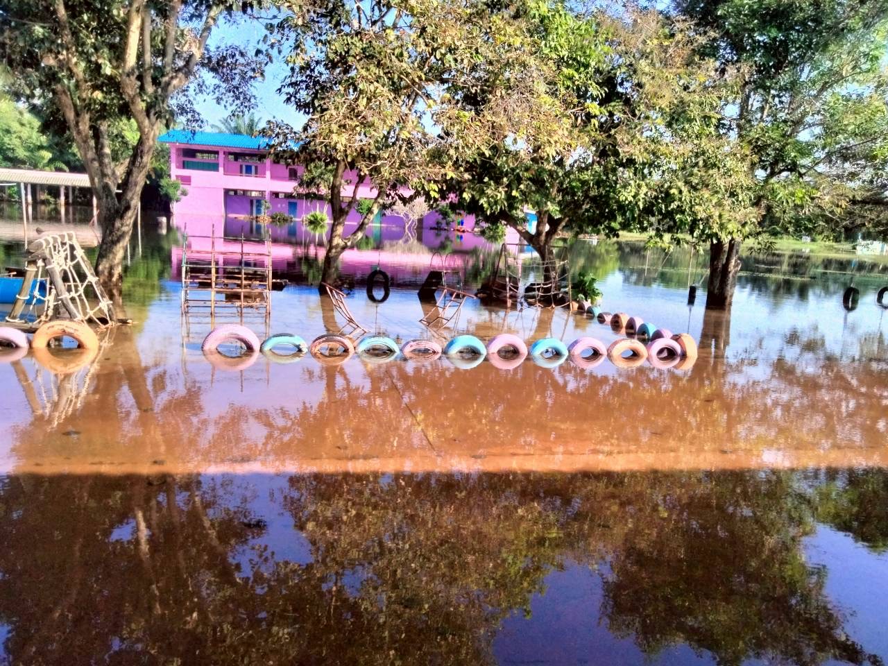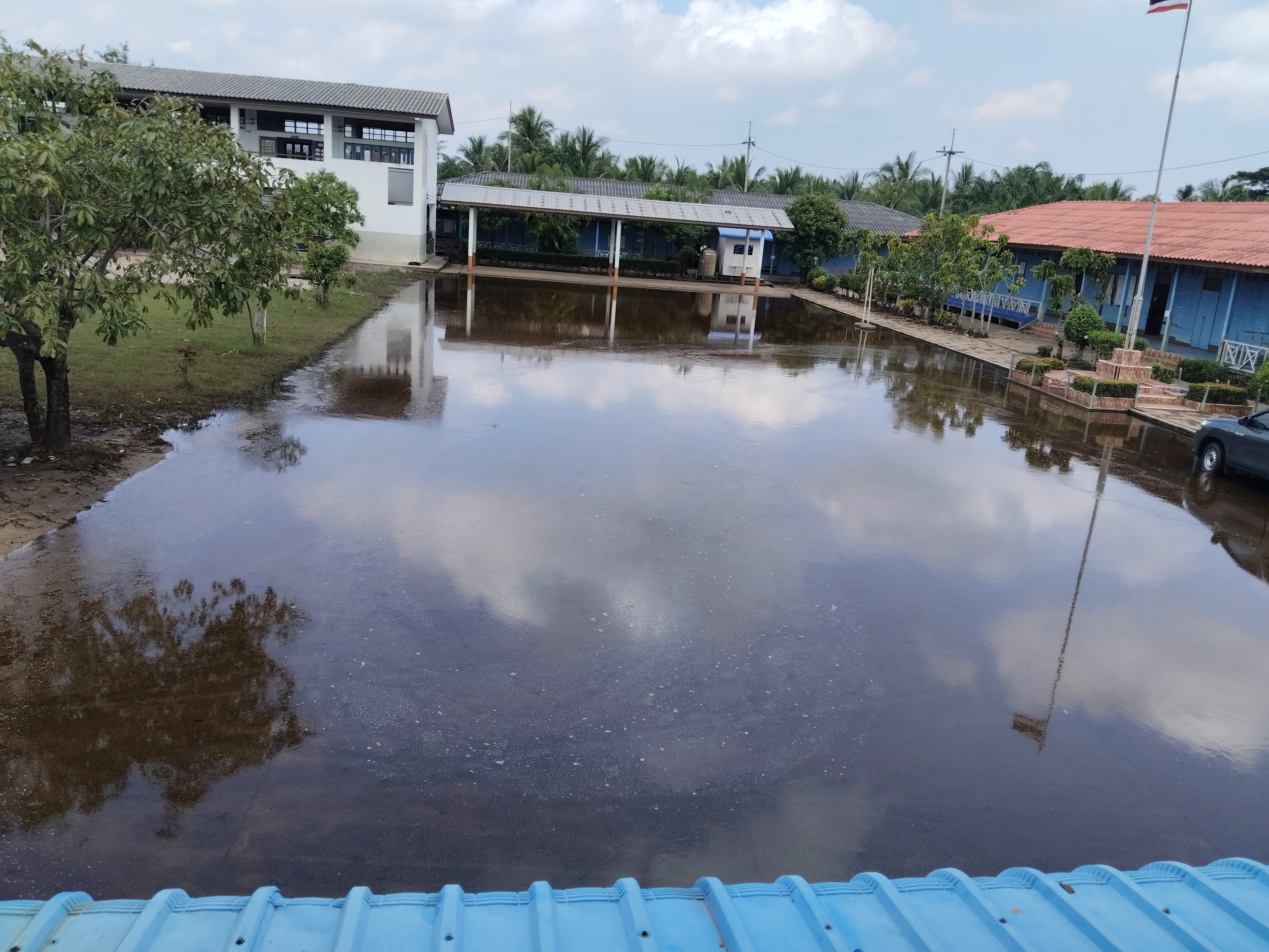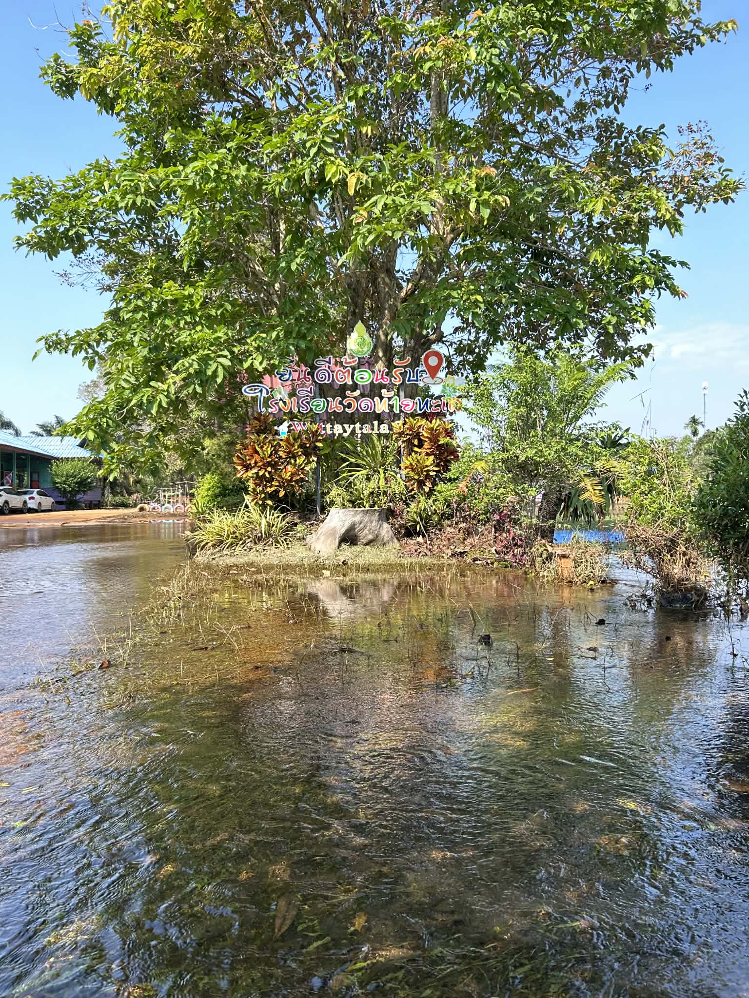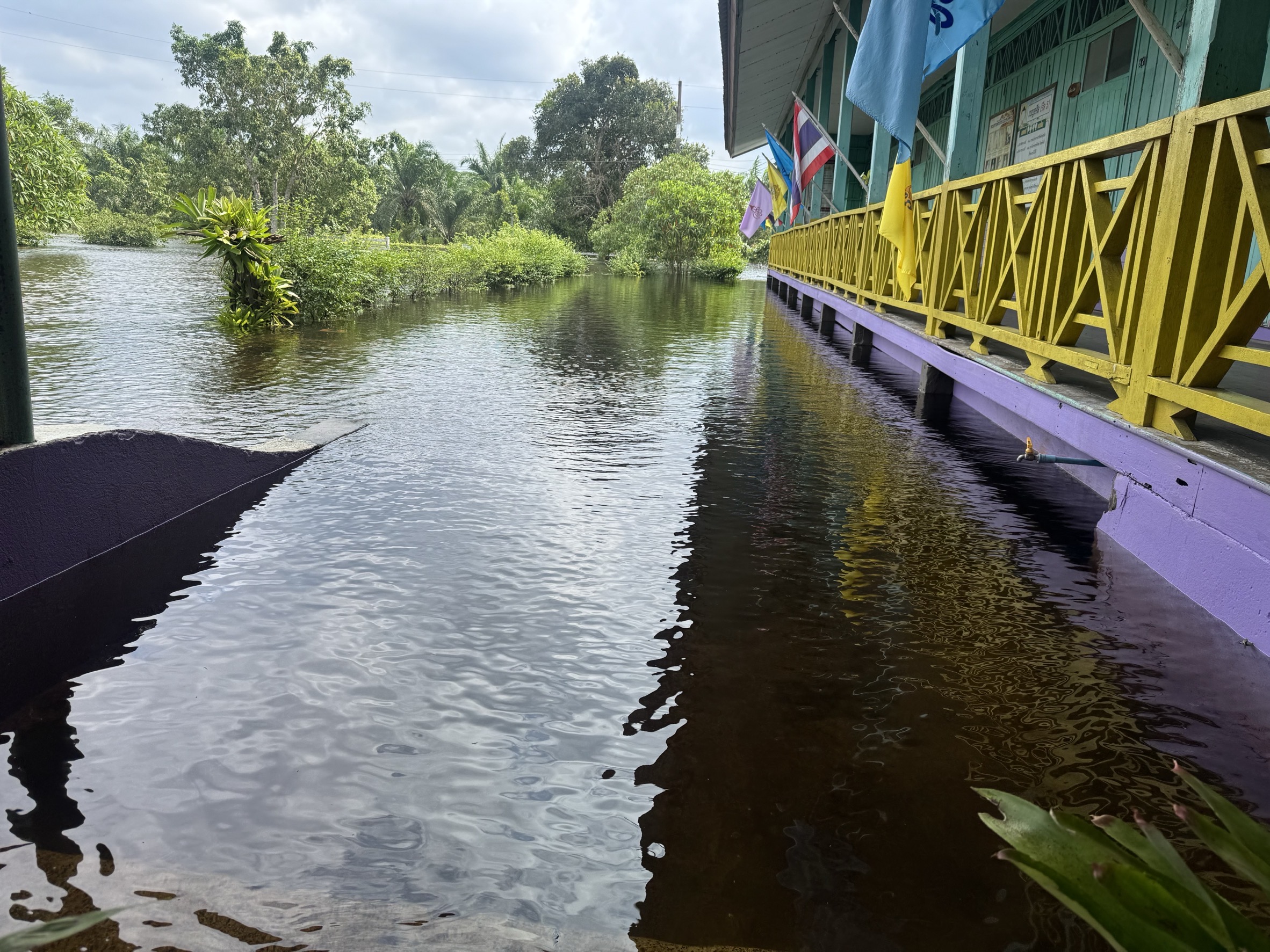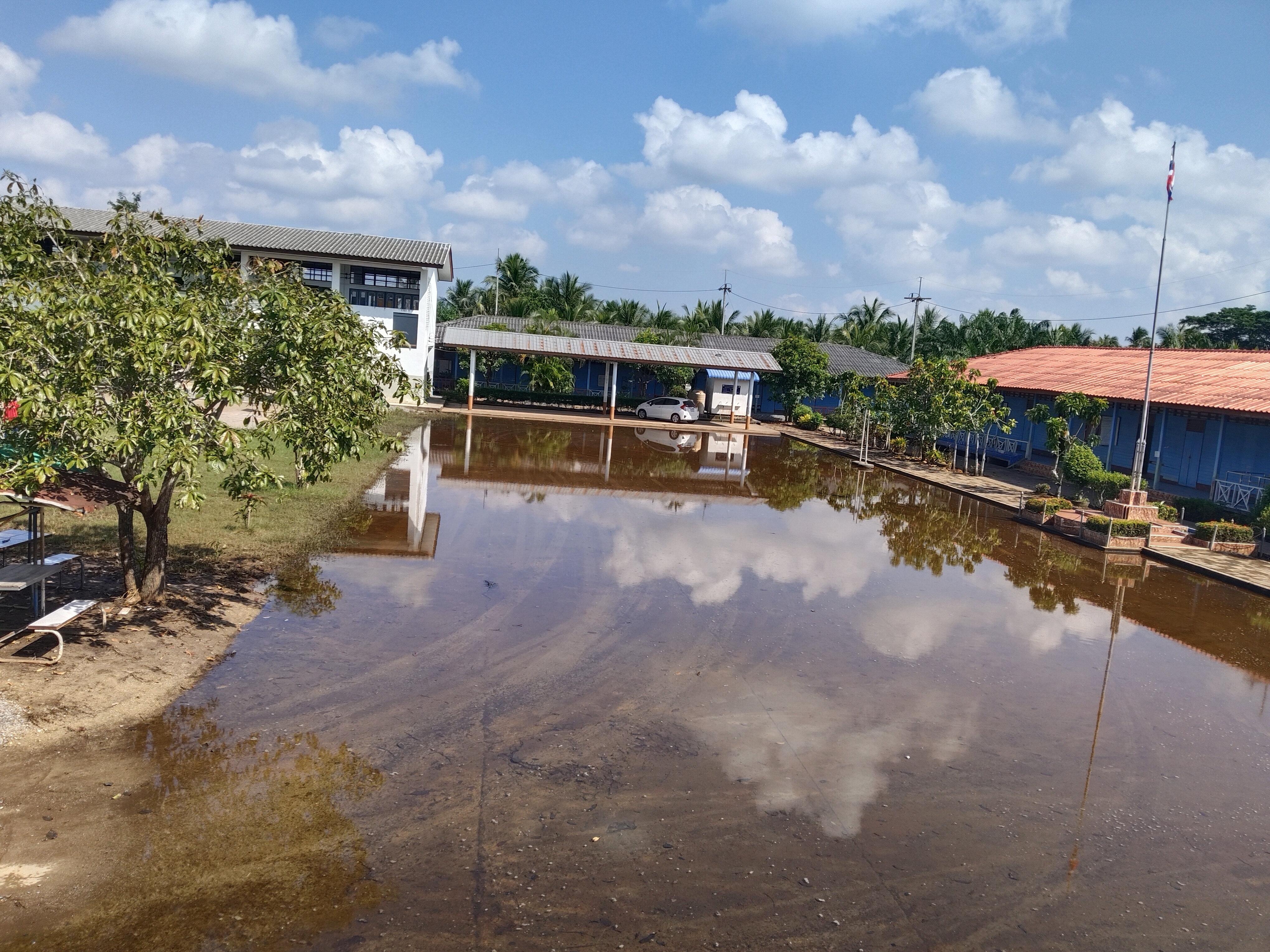 3. ถนนและทางเดินภายในโรงเรียนมีระดับน้ำสูง รถเล็กไม่สามารถสัญจรภายในโรงเรียนได้ในหลายพื้นที่