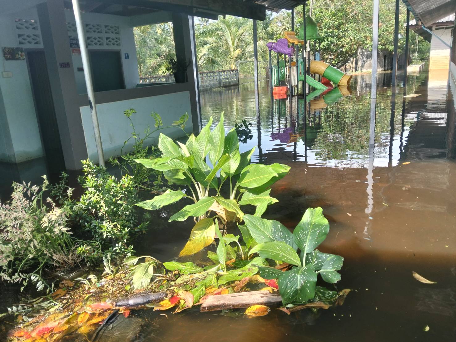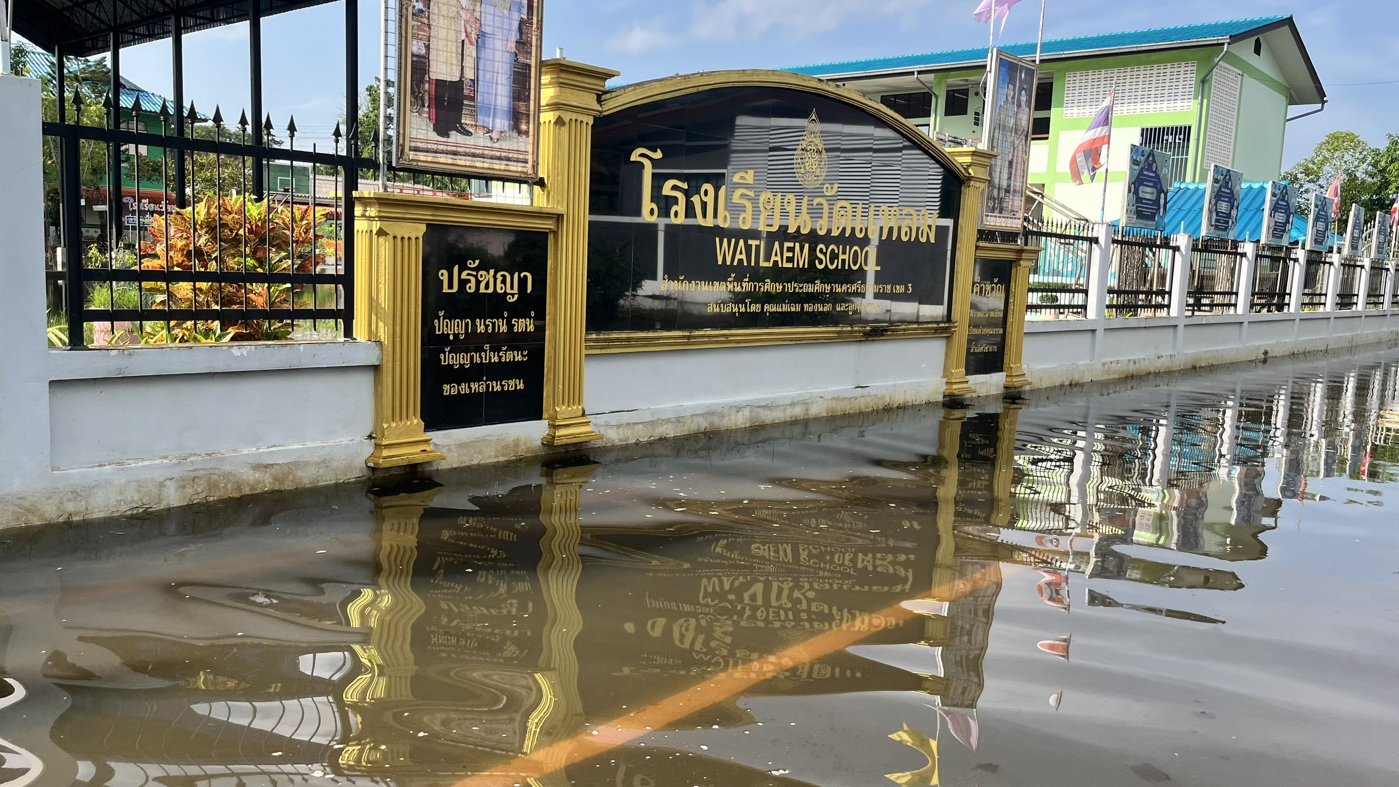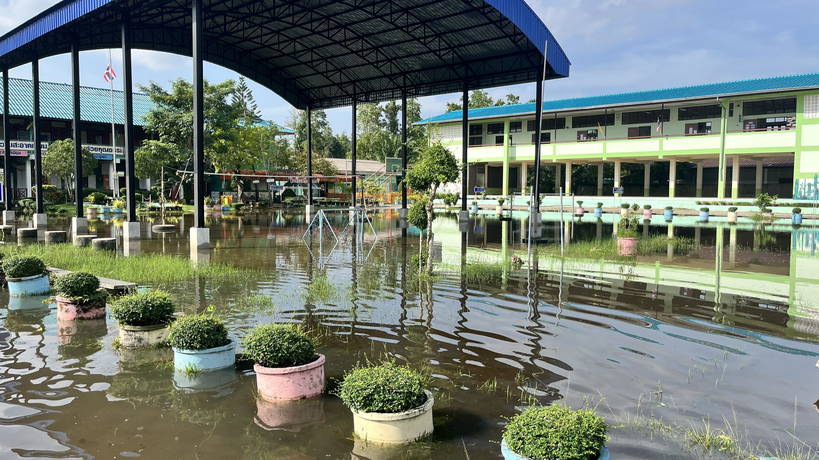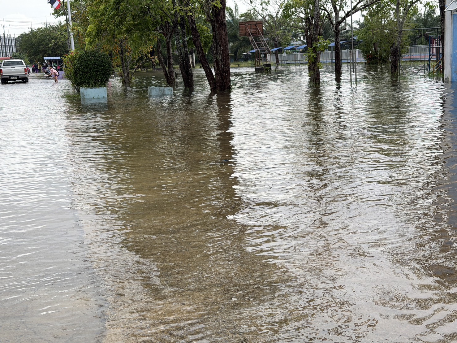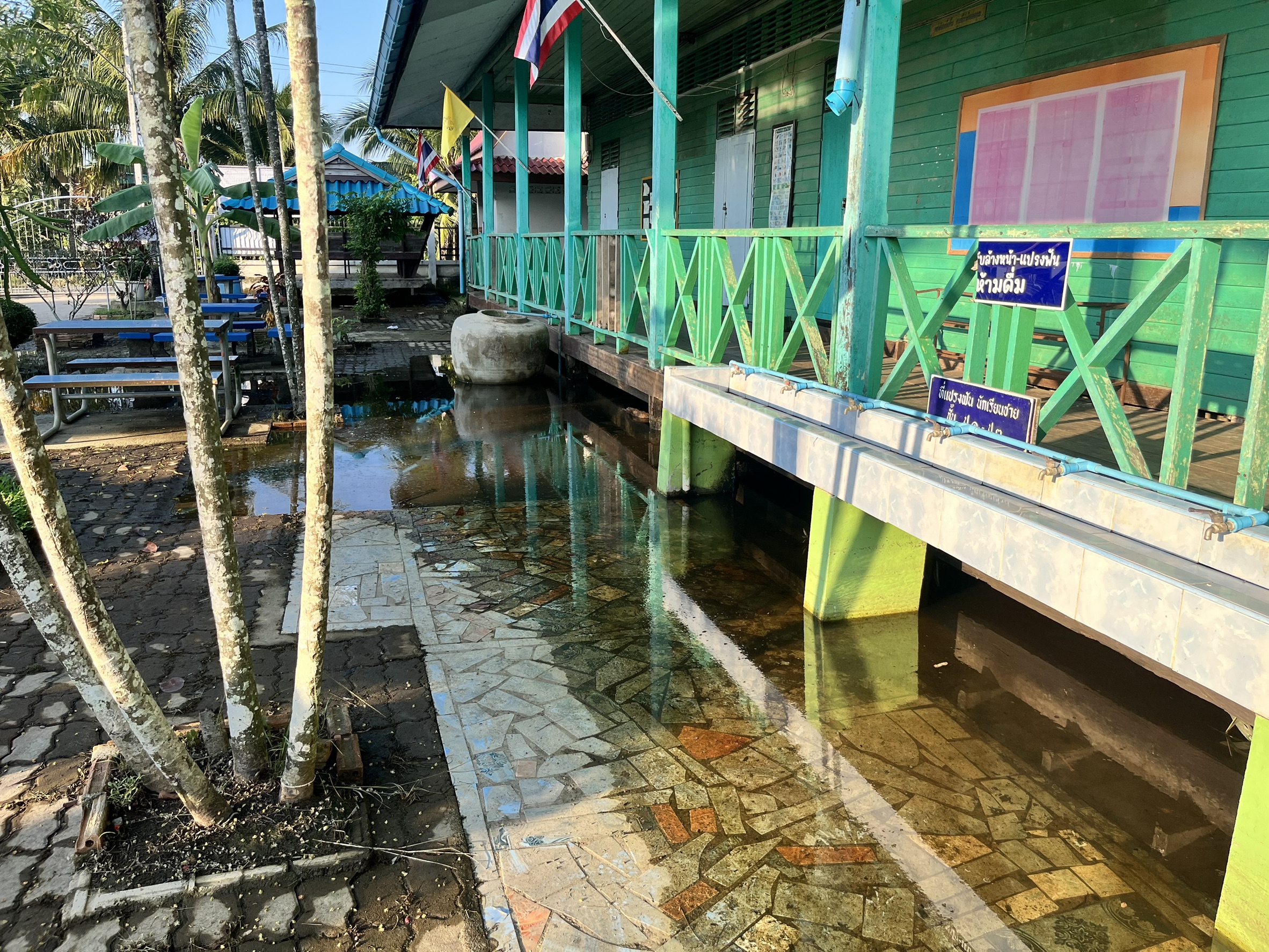 3. ถนนและทางเดินภายในโรงเรียนมีระดับน้ำสูง รถเล็กไม่สามารถสัญจรภายในโรงเรียนได้ในหลายพื้นที่
