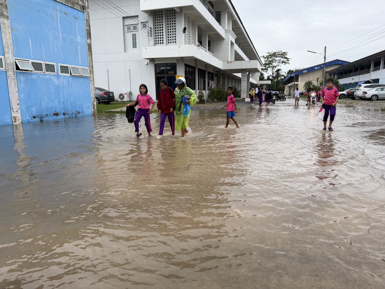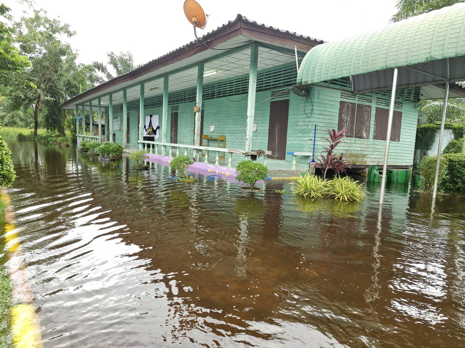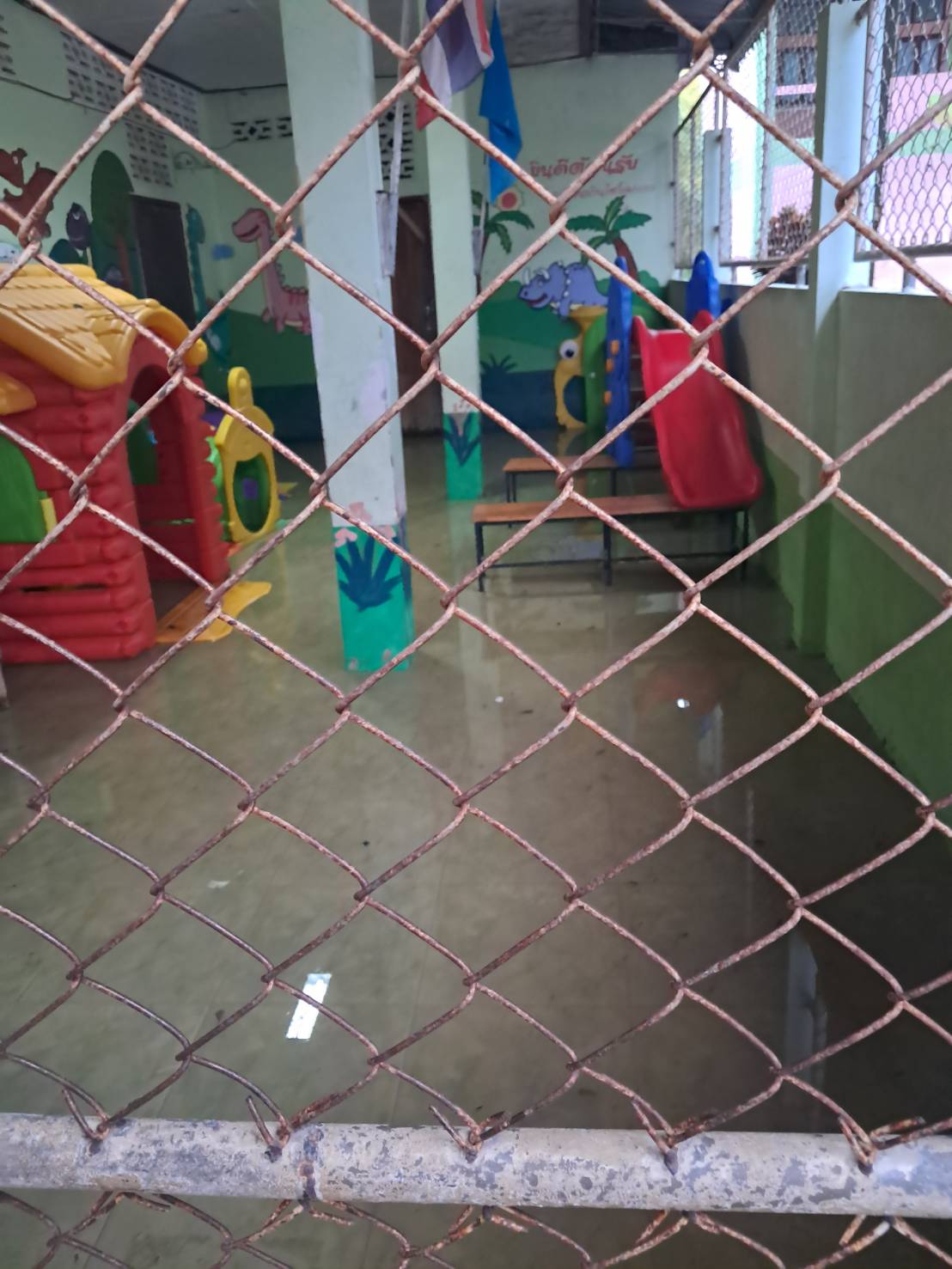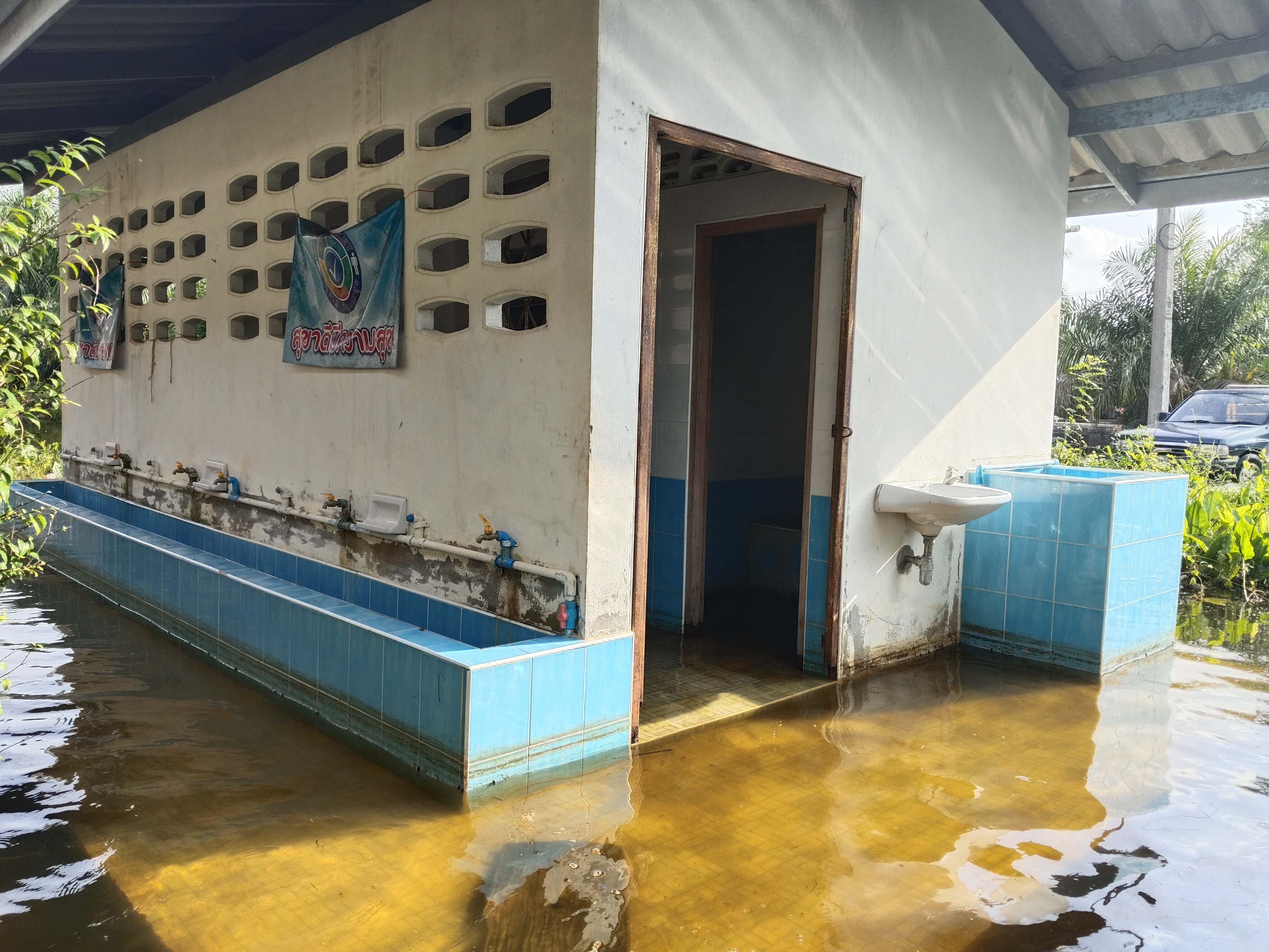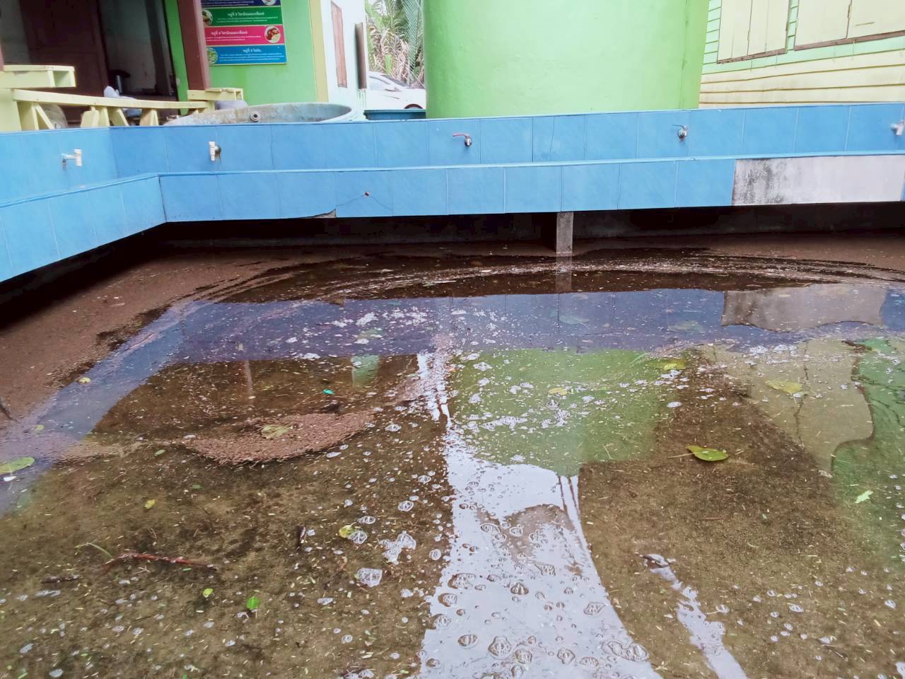 3. ถนนและทางเดินภายในโรงเรียนมีระดับน้ำสูง รถเล็กไม่สามารถสัญจรภายในโรงเรียนได้ในหลายพื้นที่