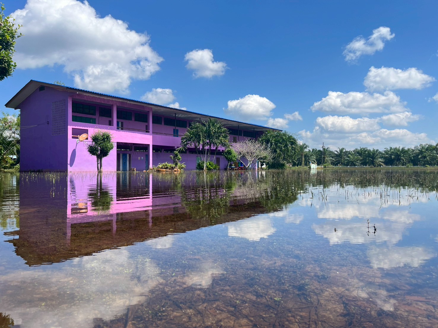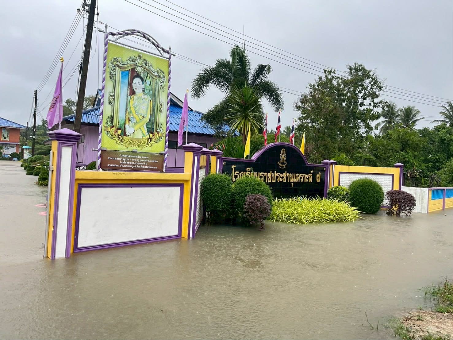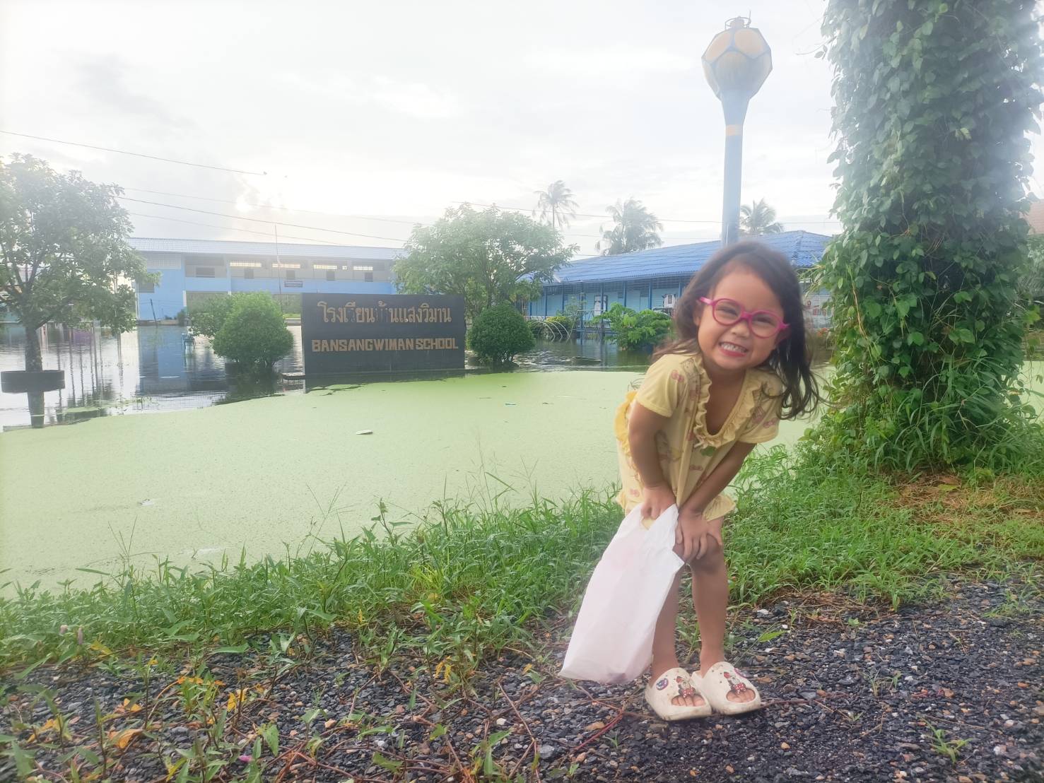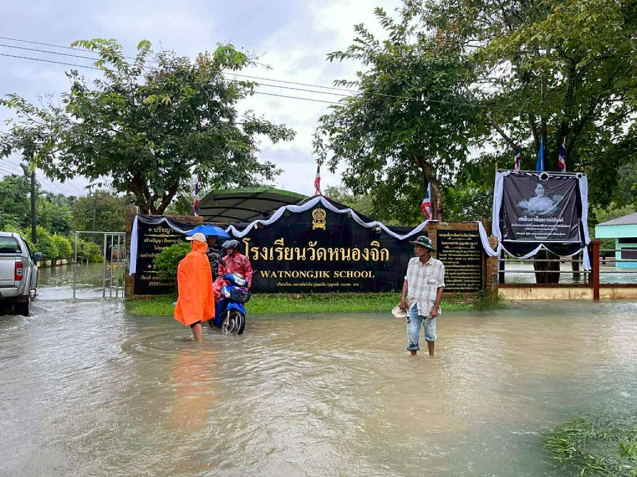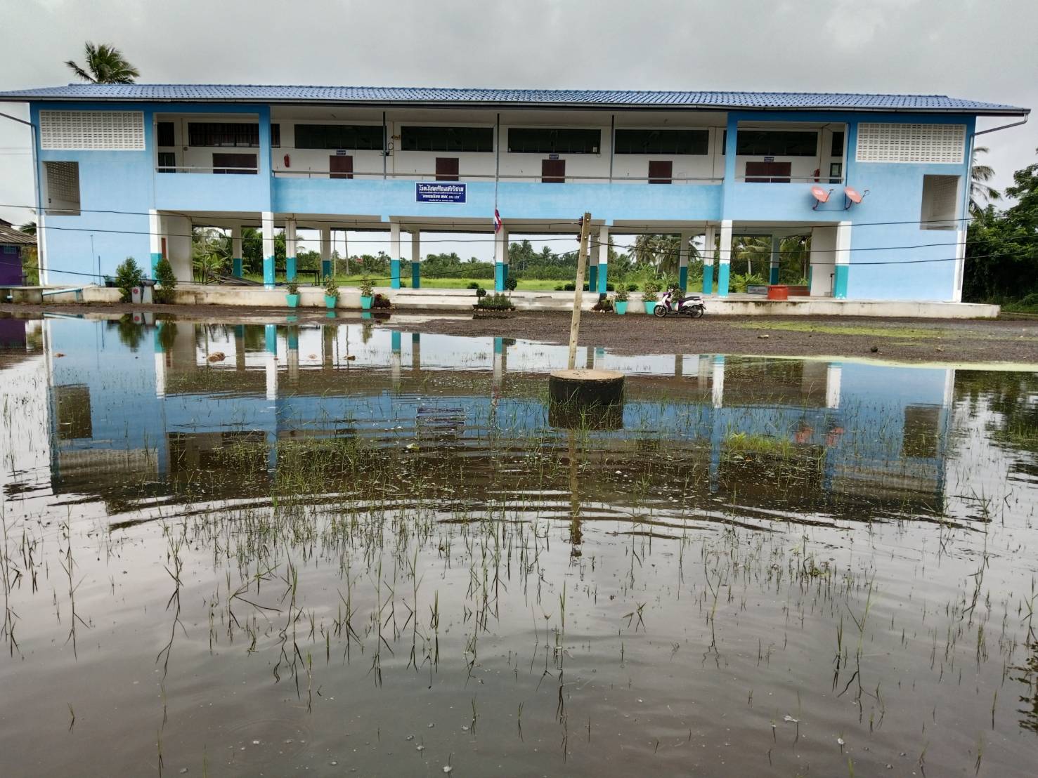 3. ถนนและทางเดินภายในโรงเรียนมีระดับน้ำสูง รถเล็กไม่สามารถสัญจรภายในโรงเรียนได้ในหลายพื้นที่