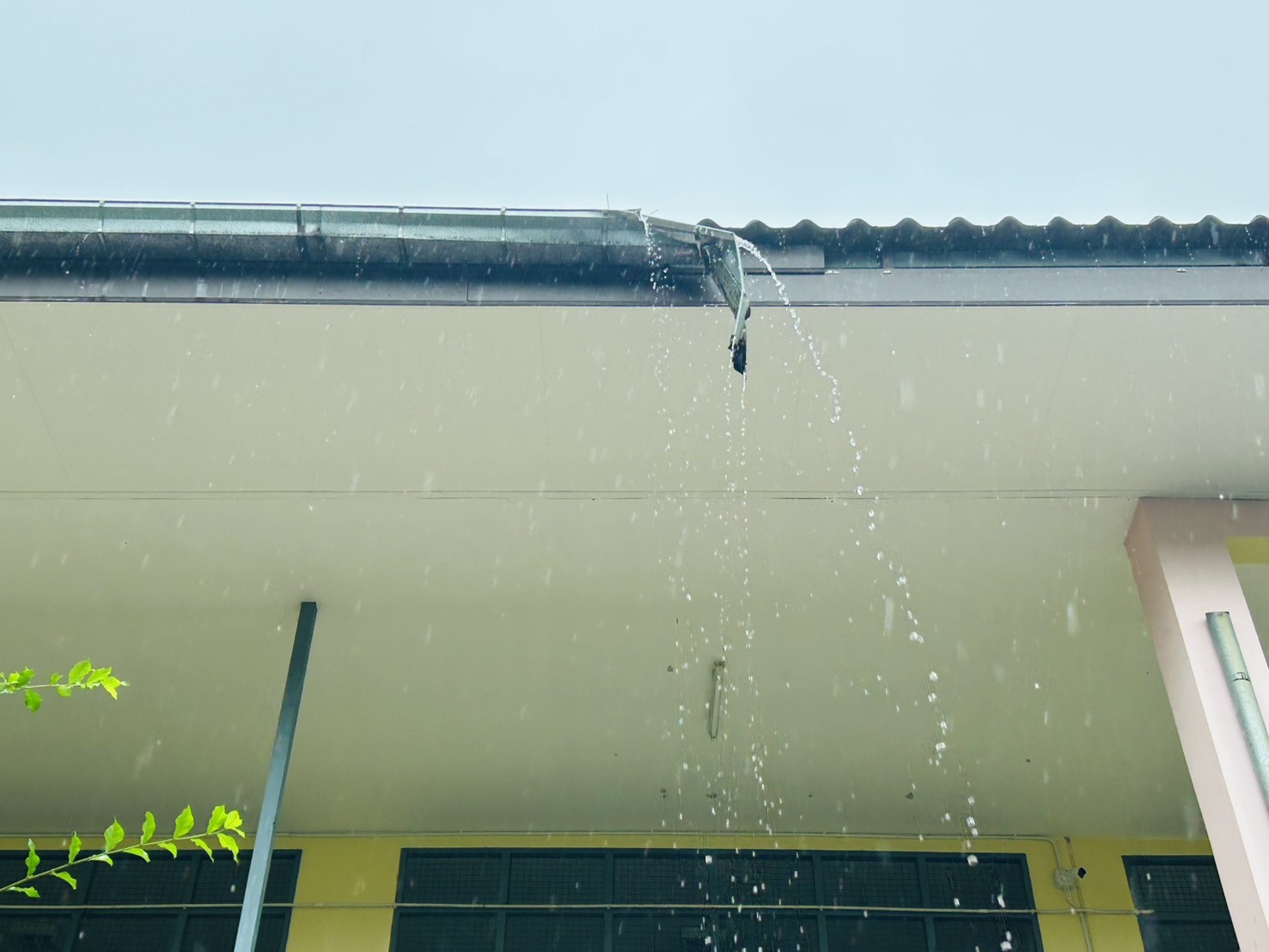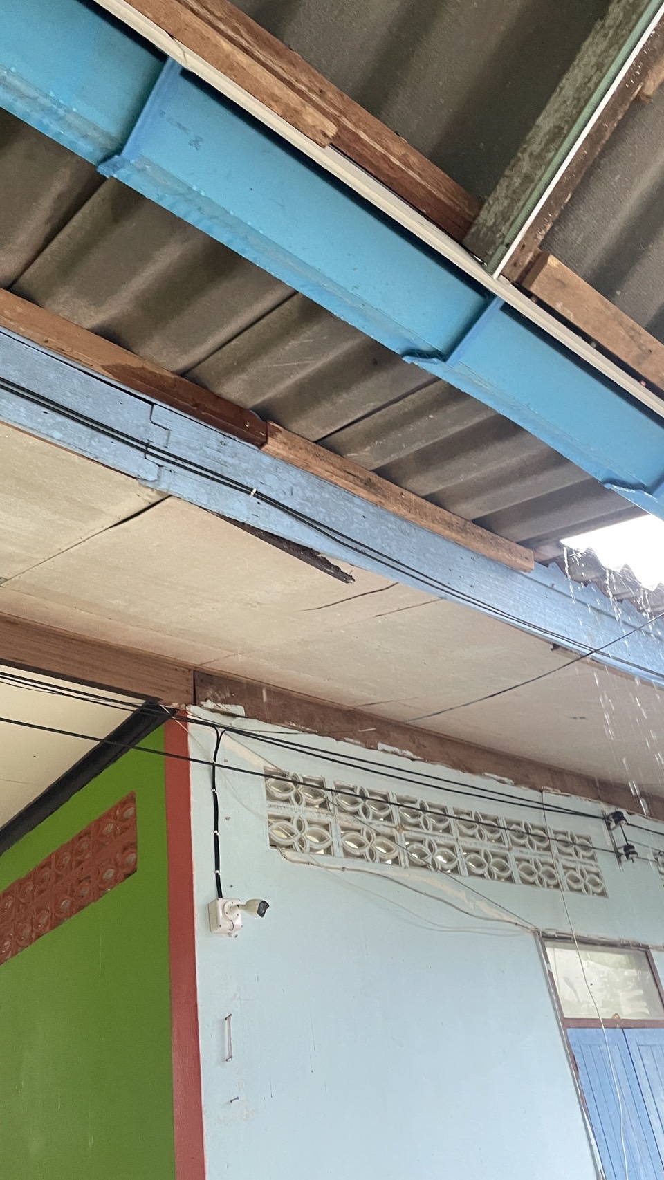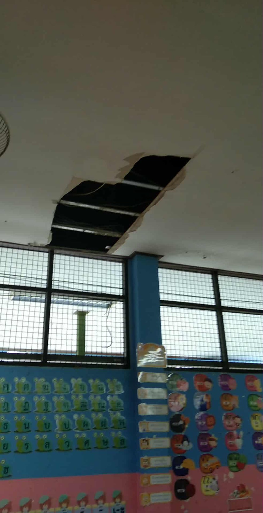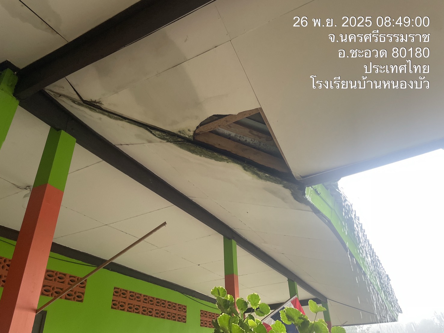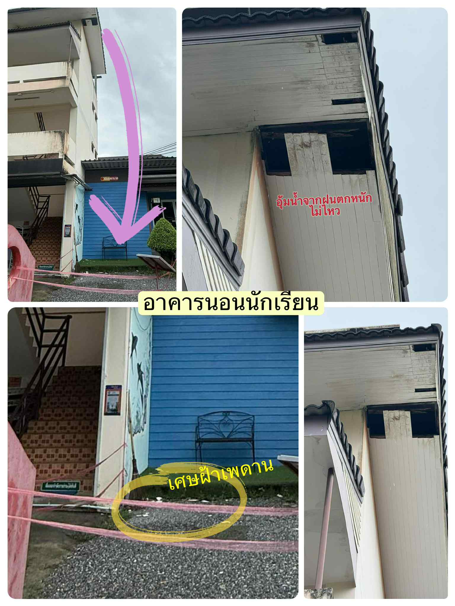 -หลังคาและฝ้าอาคารเรียนได้รับผลกระทบจากฝนตกหนัก