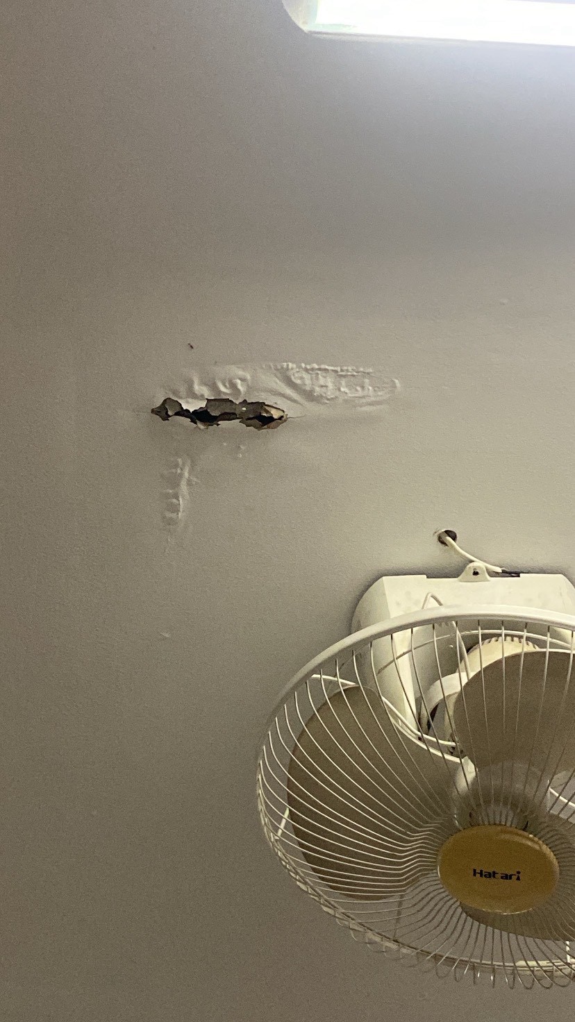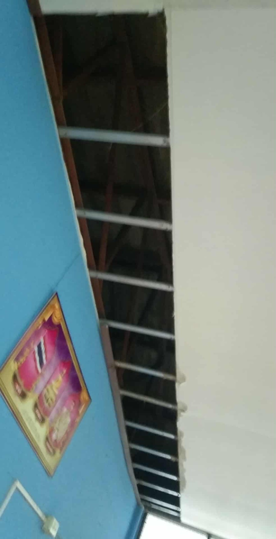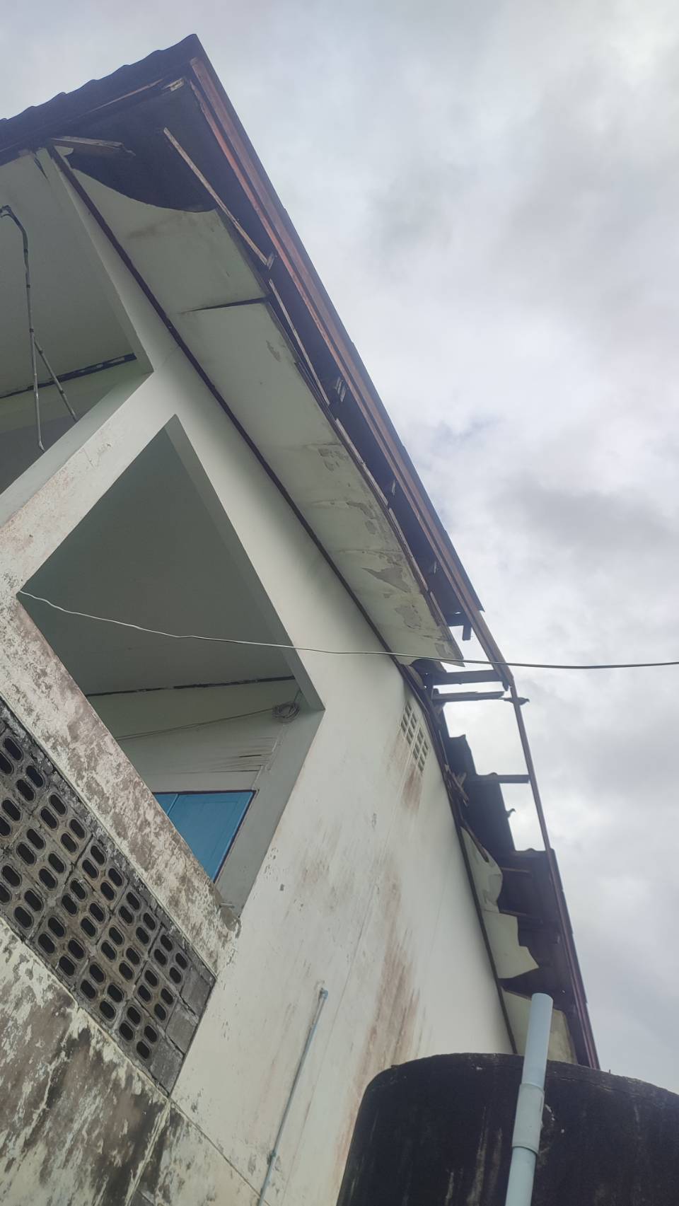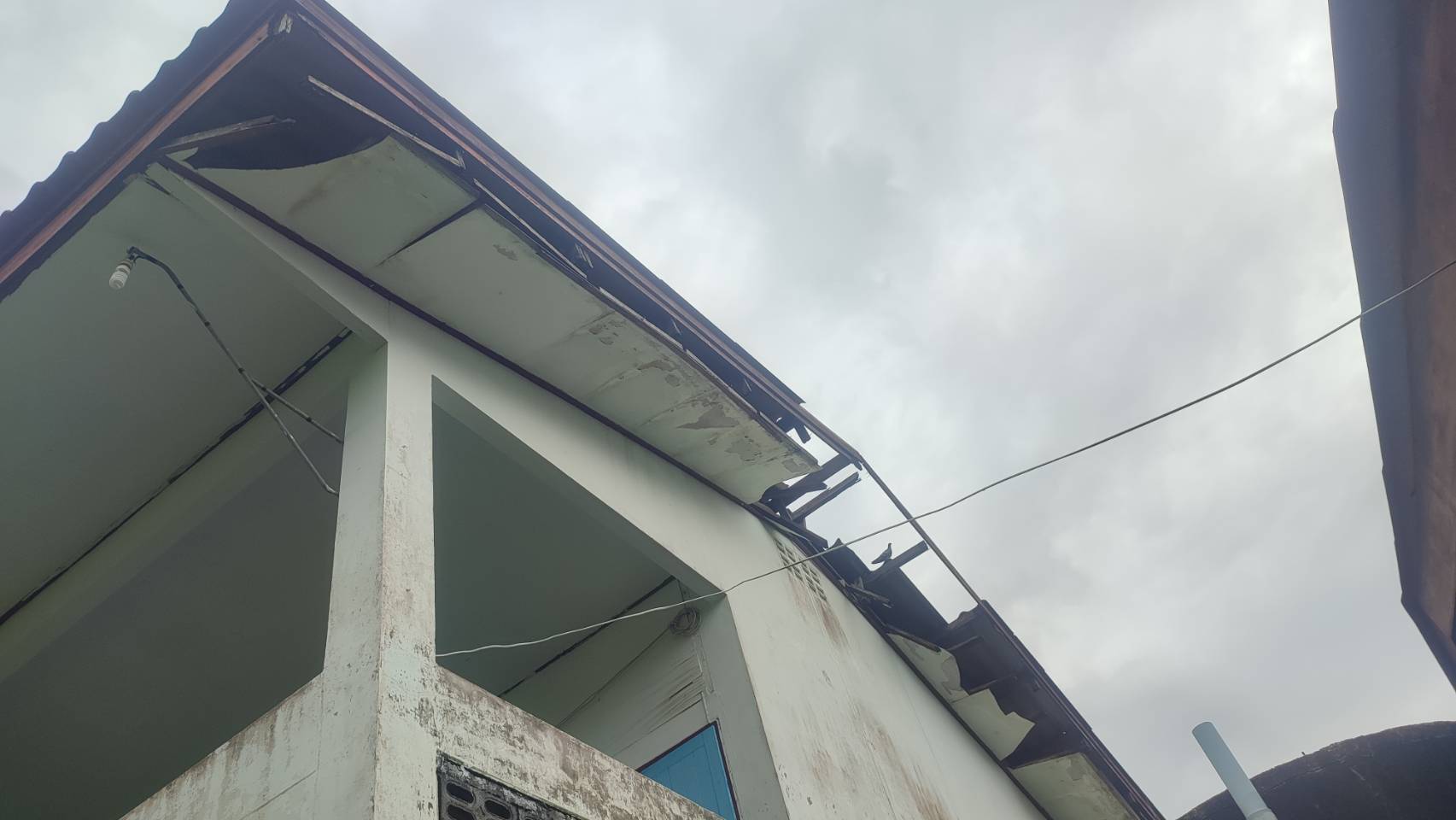 4.ฝ้าดาดฟ้าอาคารที่พักแตกหักร่วงลงจากลมพายุ ฝนตกหนัก