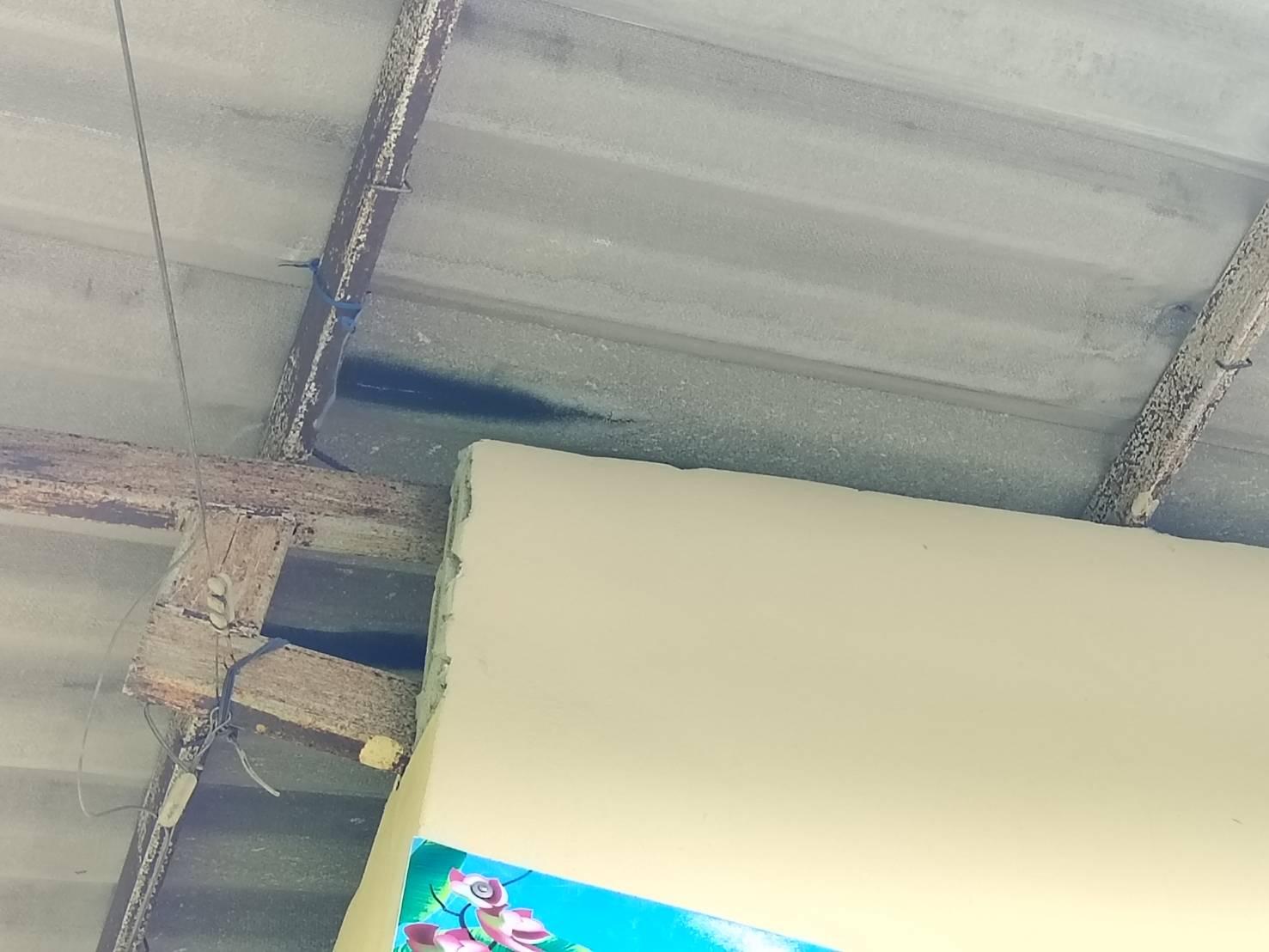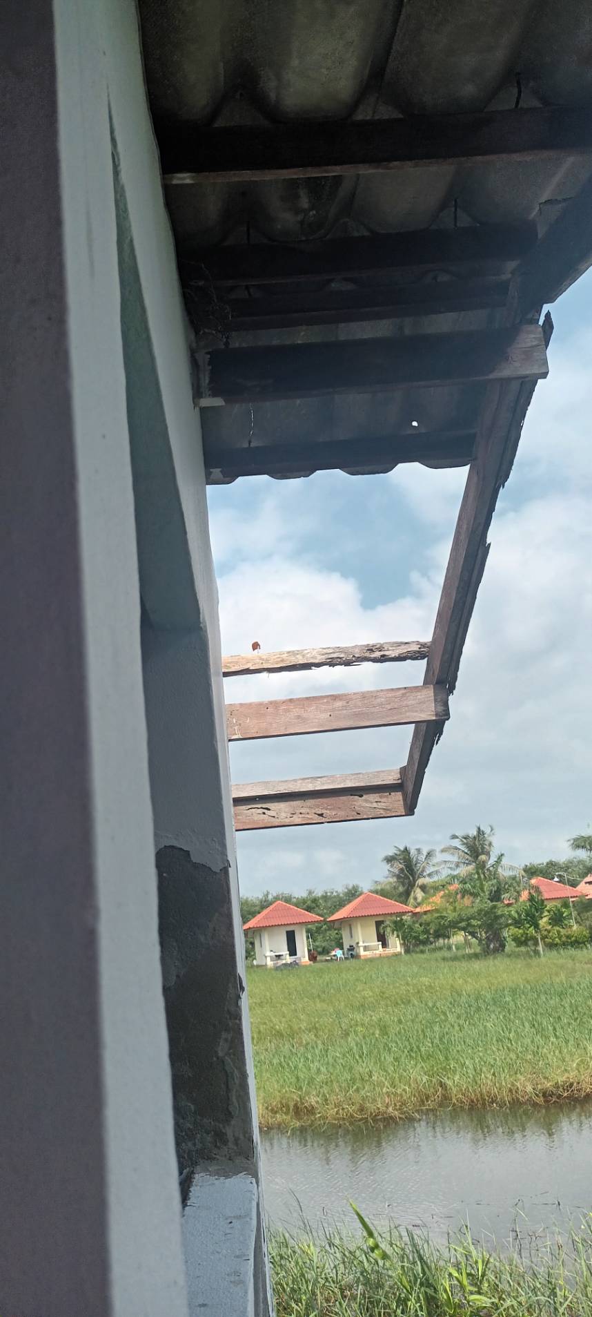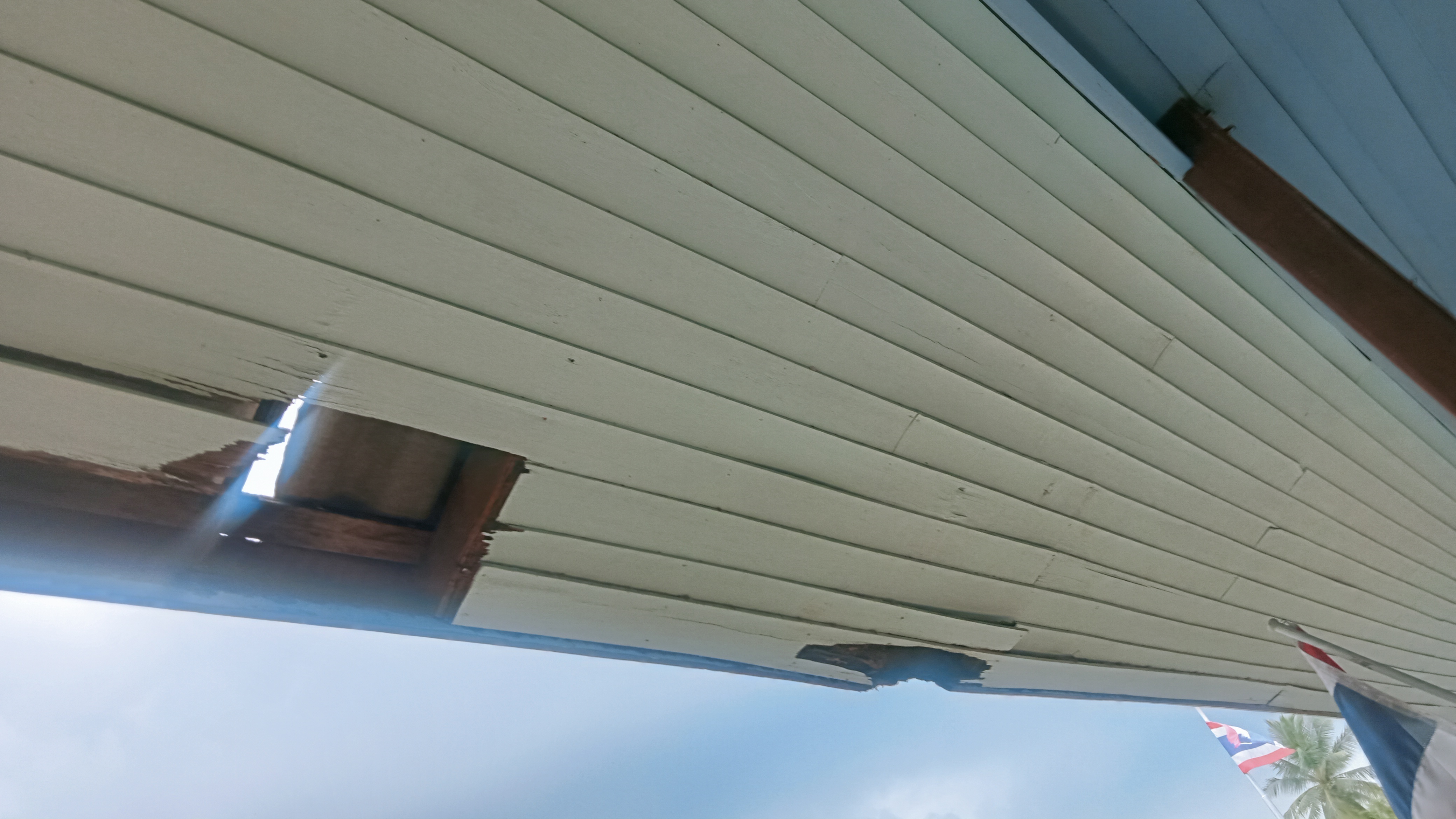 4.ฝ้าดาดฟ้าอาคารที่พักแตกหักร่วงลงจากลมพายุ ฝนตกหนัก