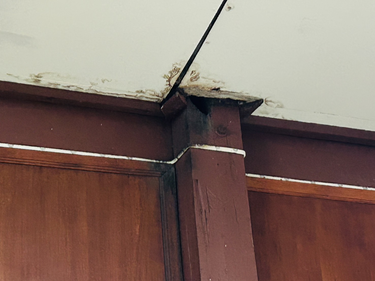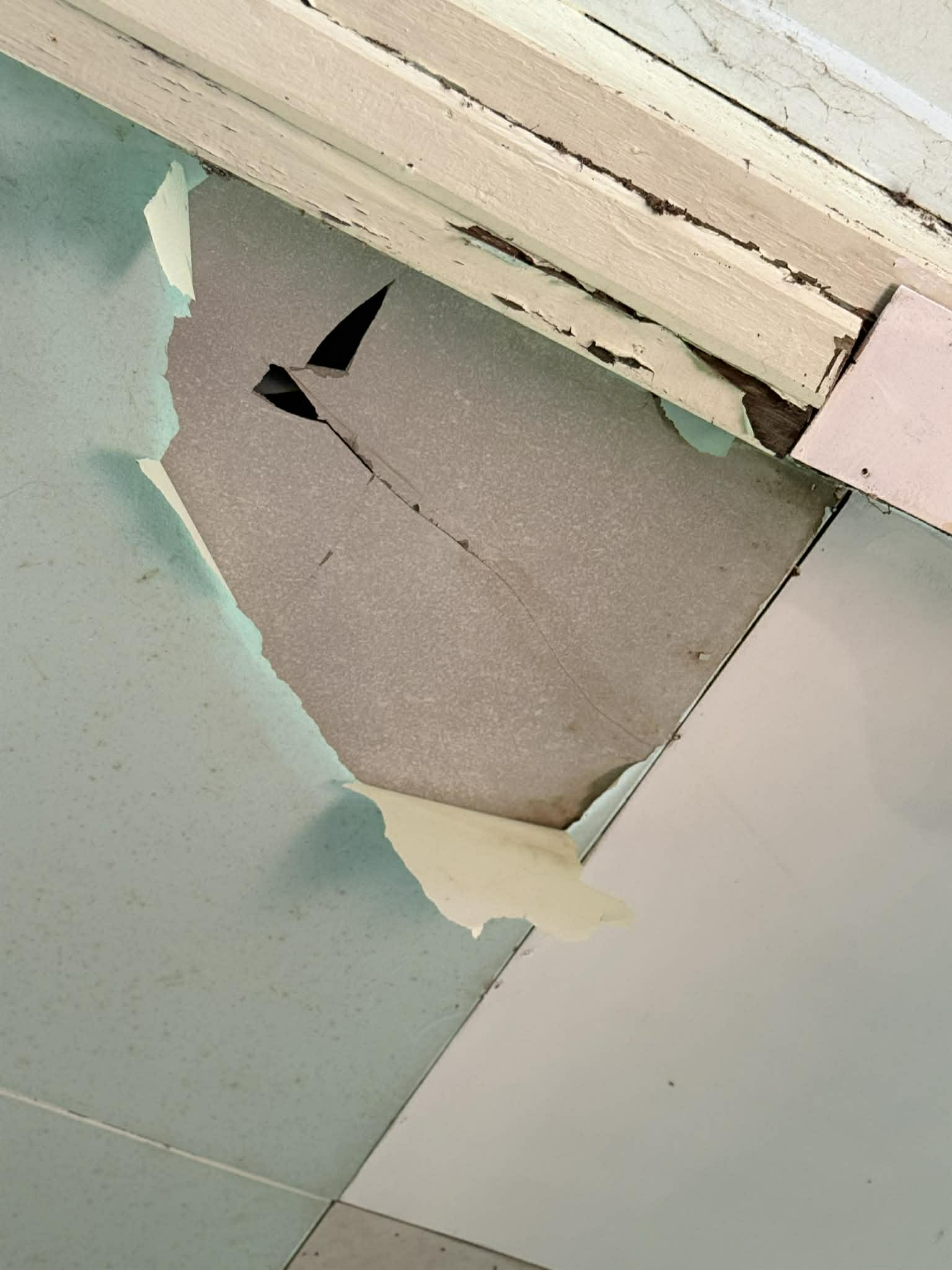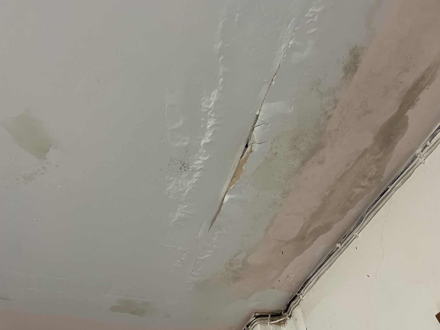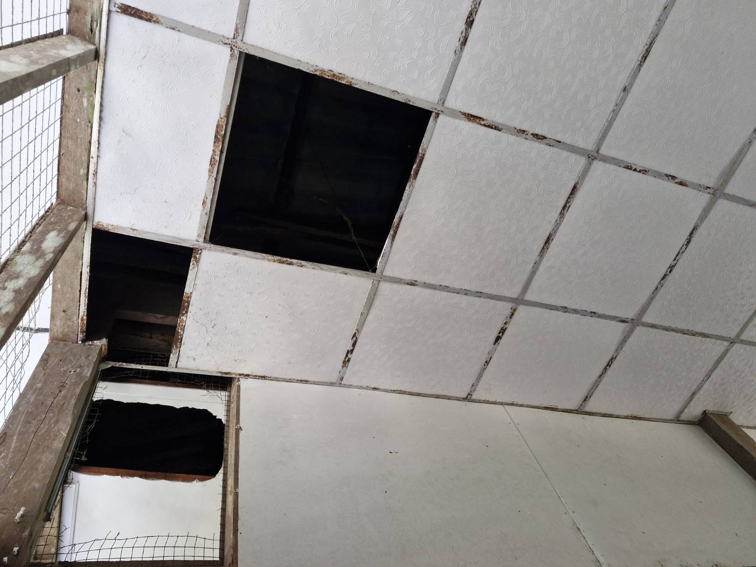 4.ฝ้าดาดฟ้าอาคารที่พักแตกหักร่วงลงจากลมพายุ ฝนตกหนัก