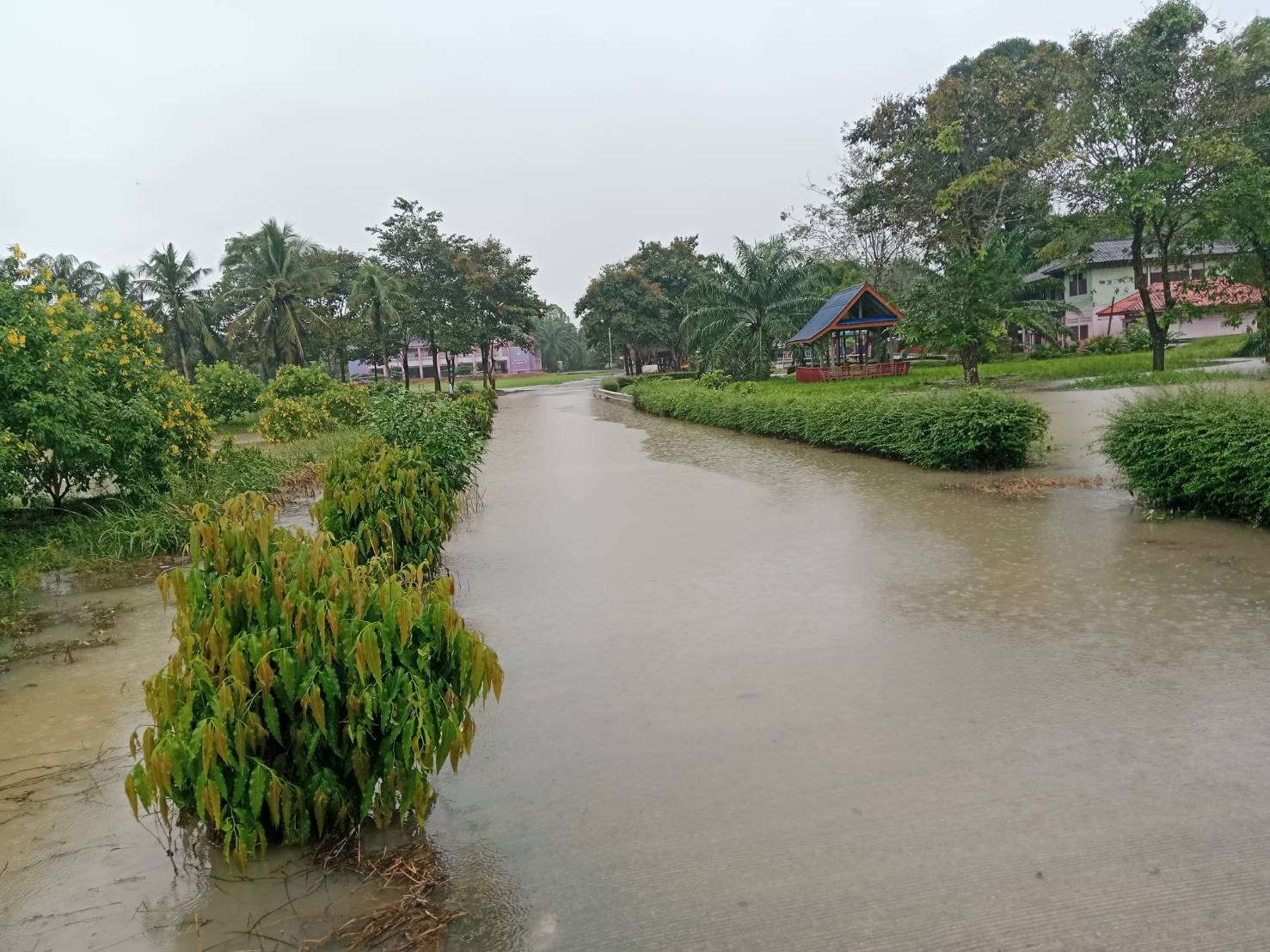 -อาคารเรียนและถนนในวิทยาลัยน้ำไม่ท่วม