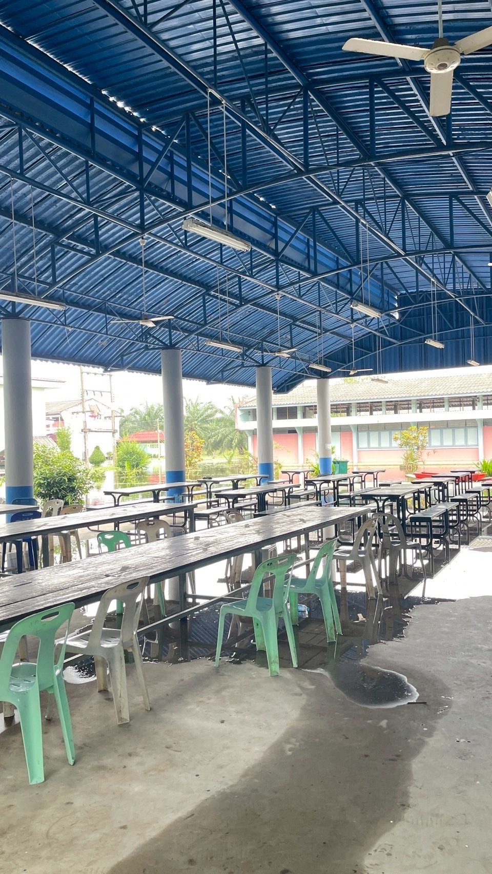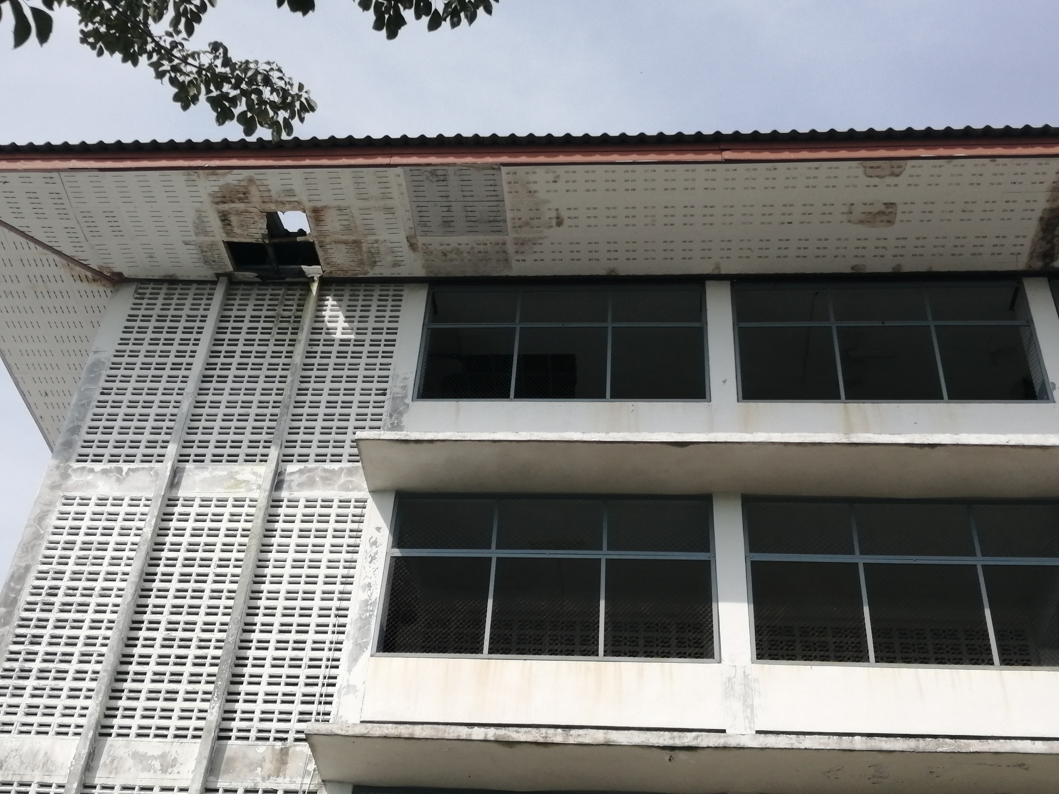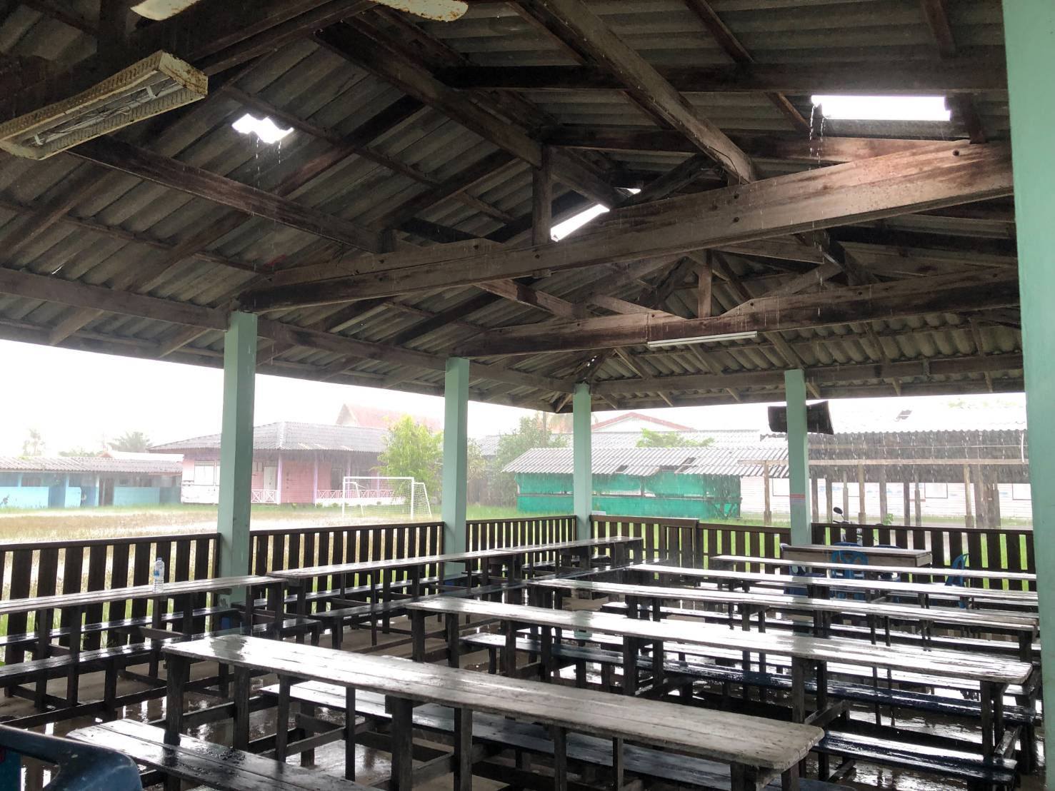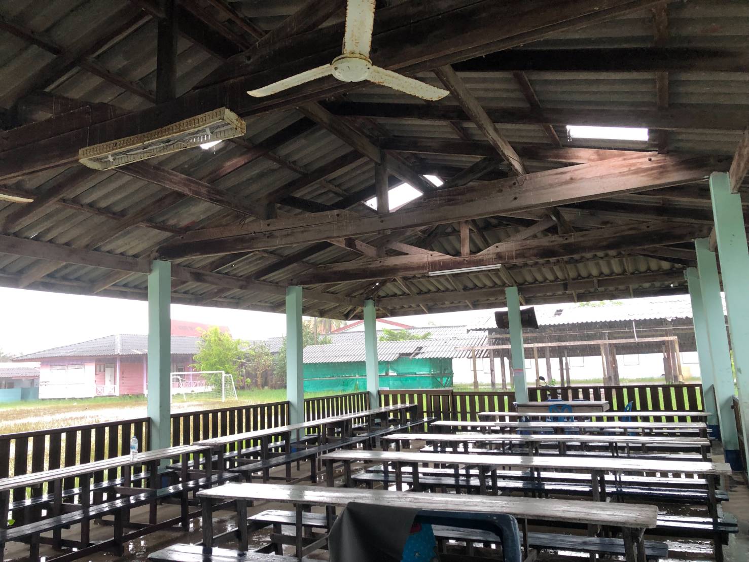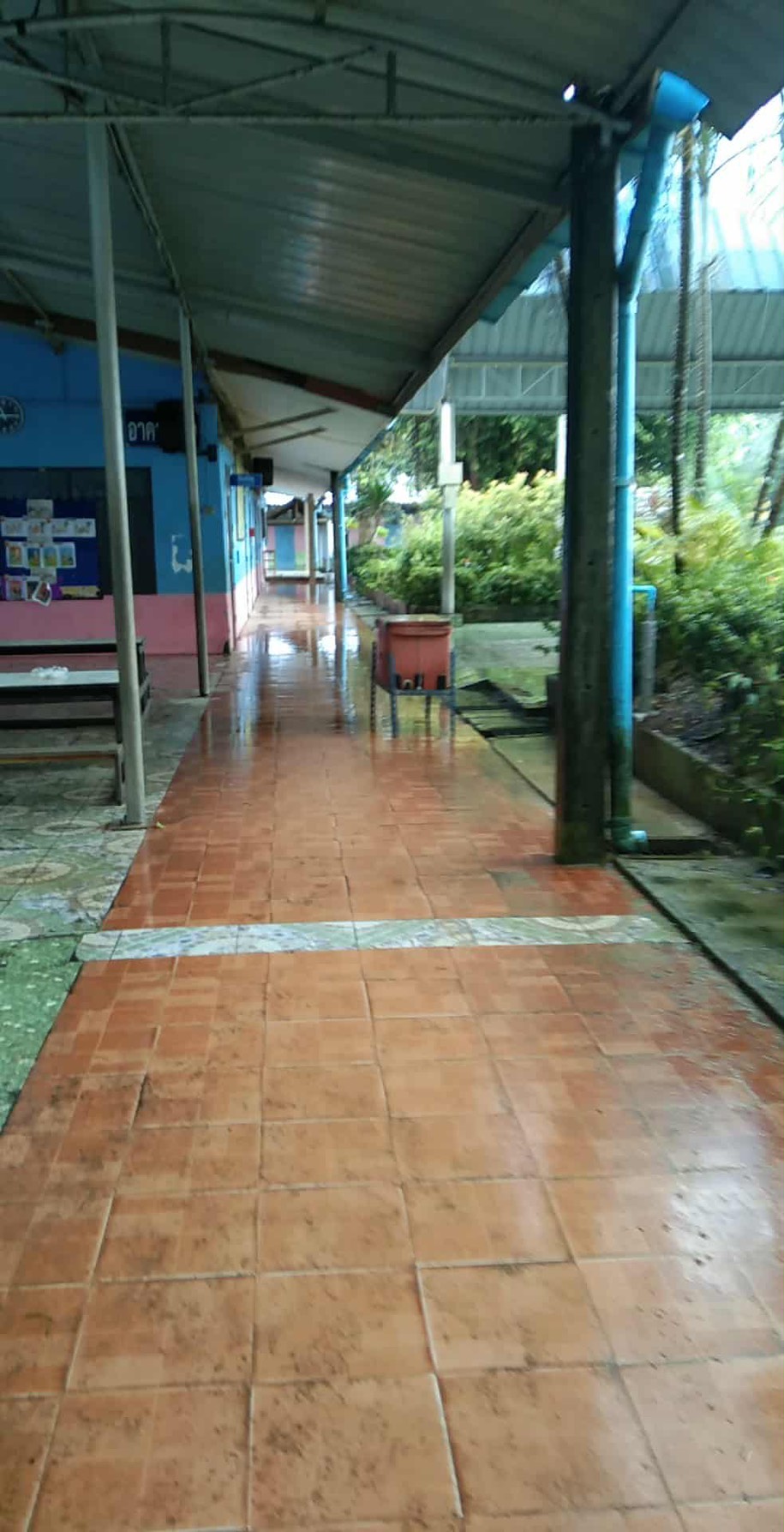 1.หลังคาอาคารลานกิจกรรมได้รับผลกระทบเมื่อฝนตกหนักนักเรียนไม่สามารถนั่งทำกิจกรรมได้