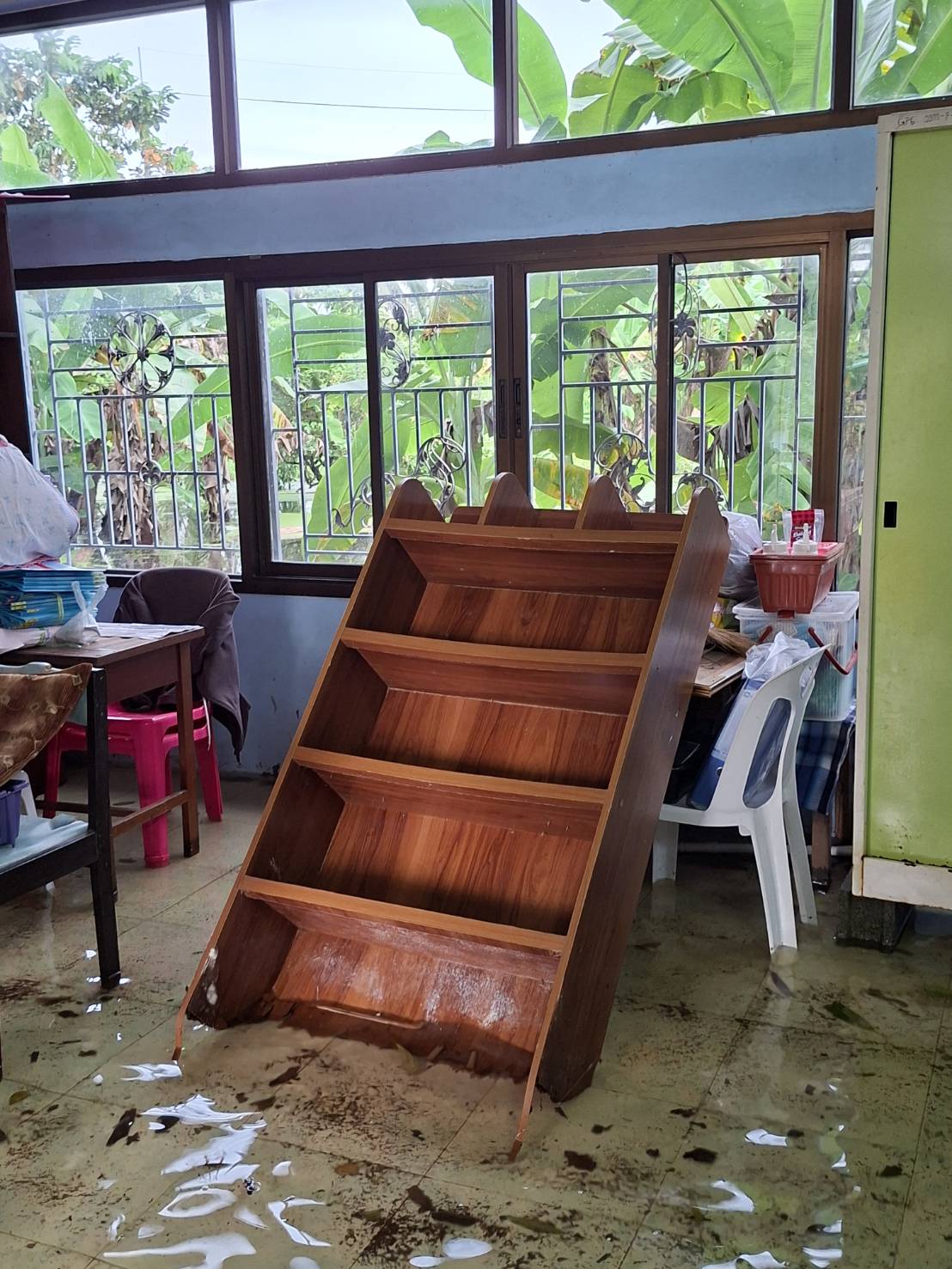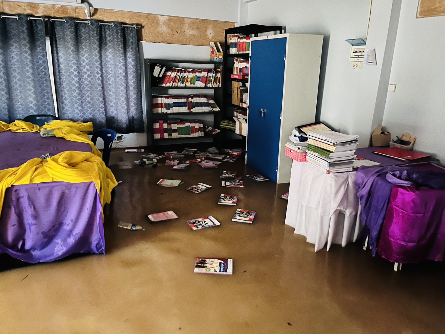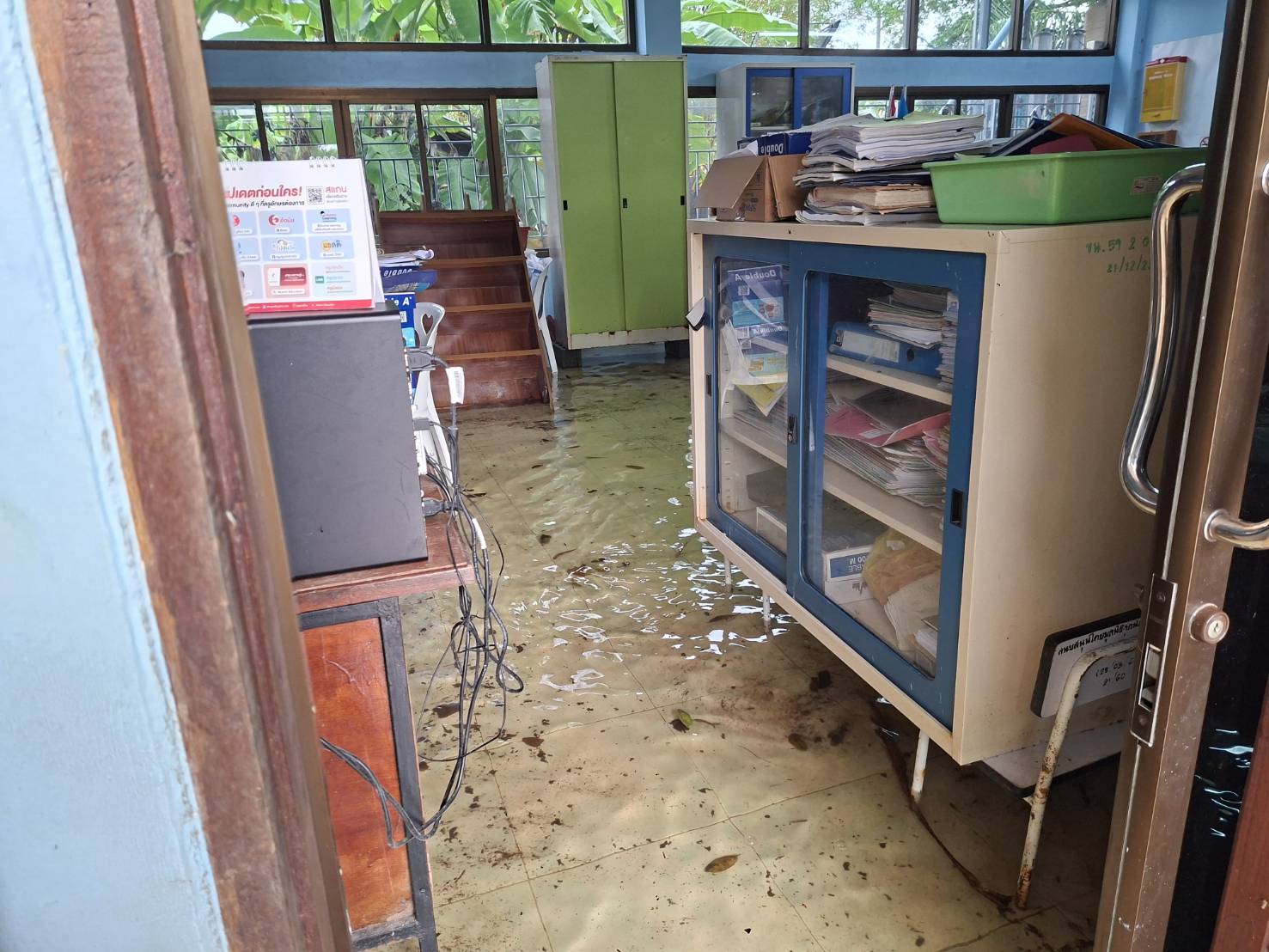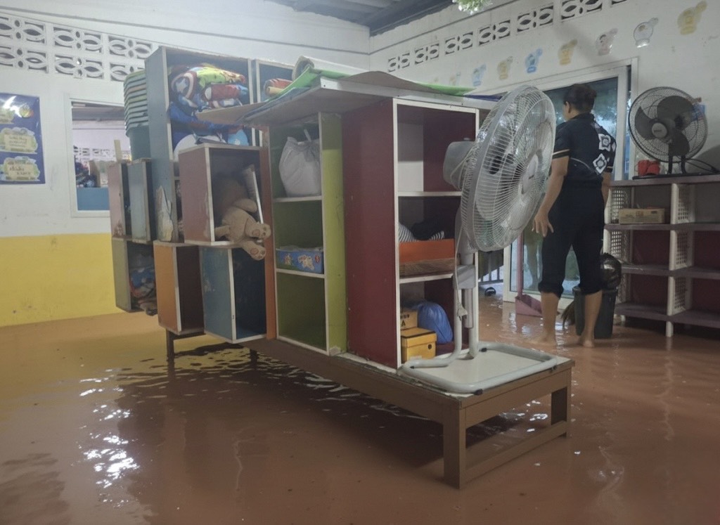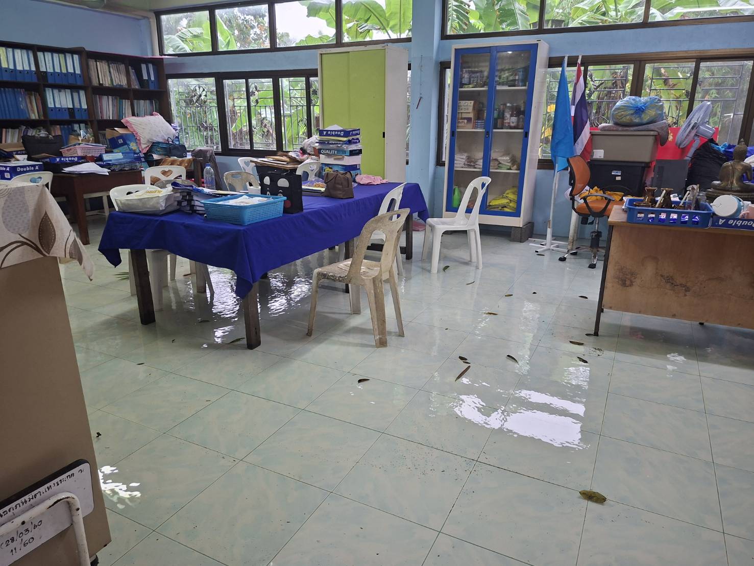 2. น้ำได้เข้าท่วมภายในอาคารหลายหลัง ได้แก่ อาคารสำนักงาน งานธุรการ งานการเงิน ห้องพักครูบางส่วน รวมถึงห้องเรียนบางห้อง ทำให้ไม่สามารถใช้งานพื้นที่ได้ตามปกติ