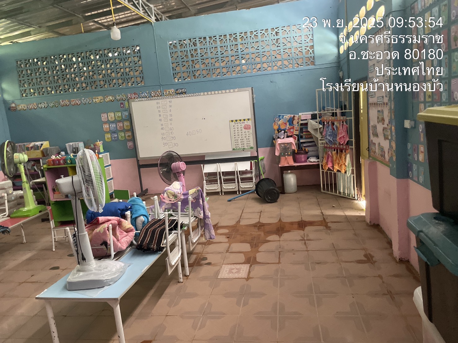 | 71 | บ้านบางวัง สำนักงานคณะกรรมการการศึกษาขั้นพื้นฐาน (สพป.นศ.3) | สถานการณ์ :- ฝนตกหนัก น้ำท่วมขังทั่วบริเวณ