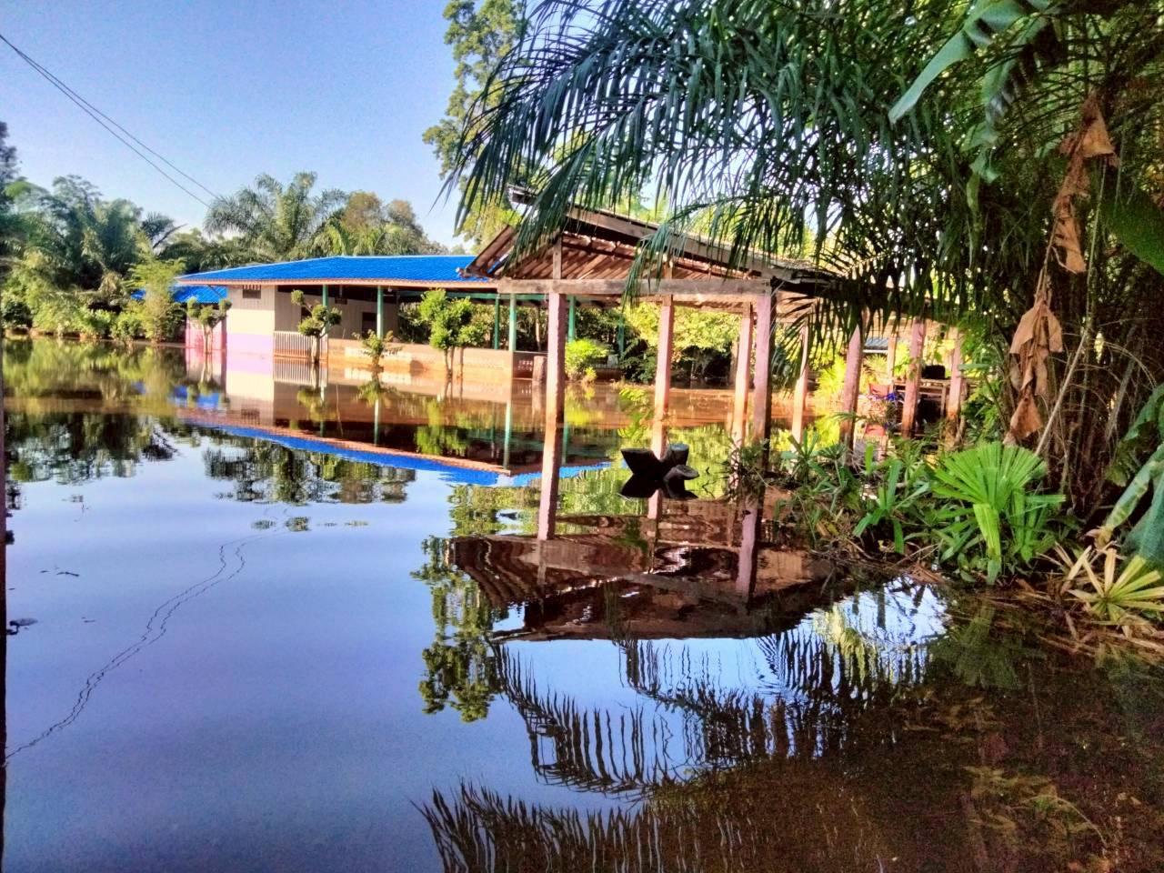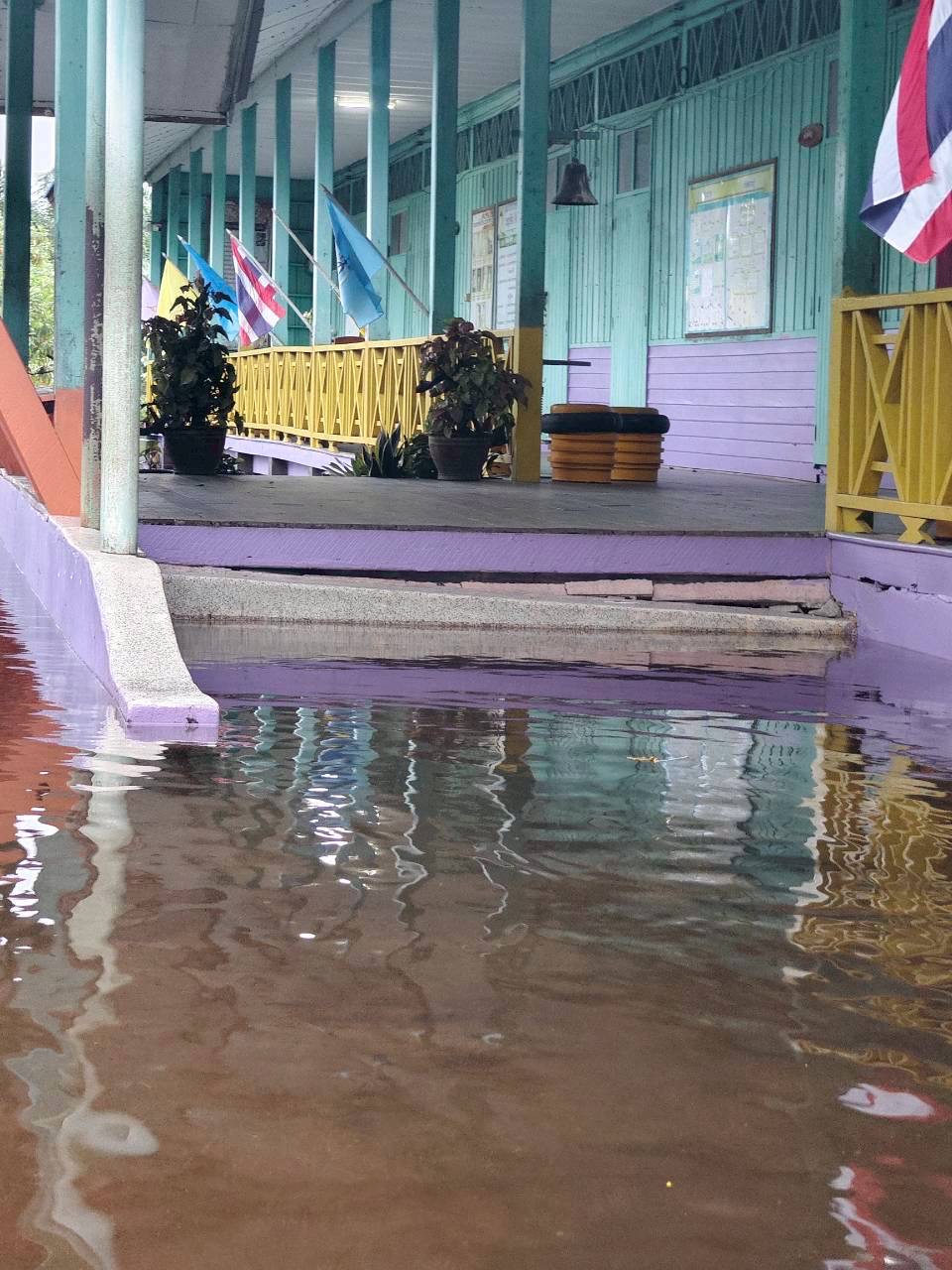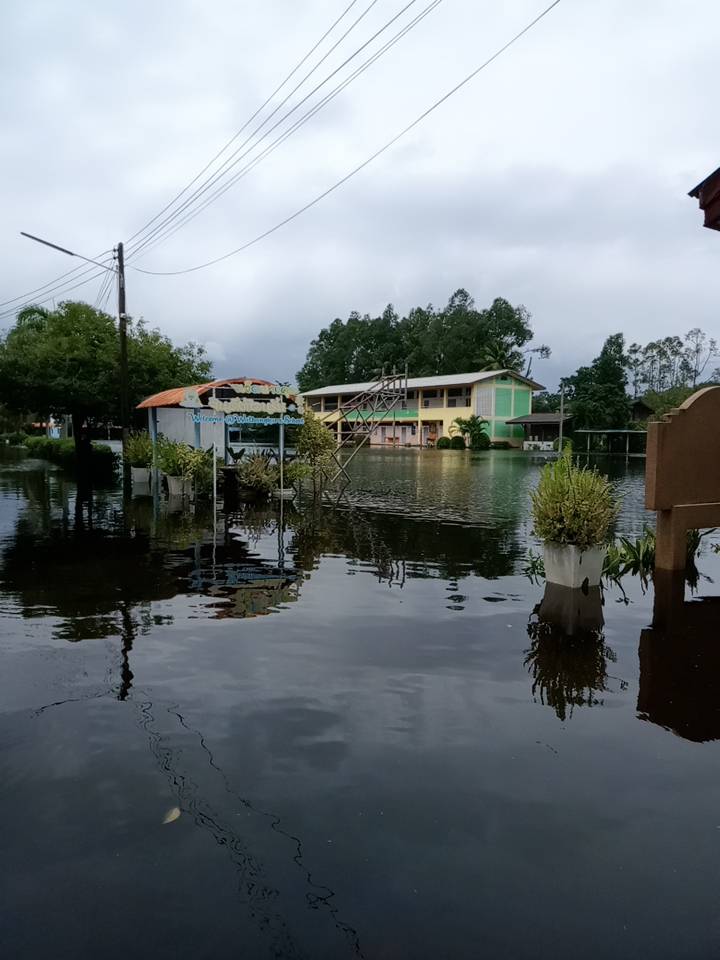 | 118 | บ้านเกาะนางโดย สำนักงานคณะกรรมการการศึกษาขั้นพื้นฐาน (สพป.นศ.3) | สถานการณ์ :- ในช่วงเที่ยงของวันนี้(เวลา12.30 น.) ปริมาณน้ำเพิ่มสูงขึ้นอย่างรวดเร็ว เนื่องจากฝนตกหนักอย่างต่อเนื่อง ประกอบกับมีน้ำทะเลหนุน ส่งผลให้ต้องให้นักเรียนกลับบ้านก่อนเวลาตามเวลาเรียนปกติ ช่วงวันที่ 24 พ.ย.ที่ผ่านมา ระดับน้ำขึ้นสูงกว่าทุกวัน ทำให้น้ำเข้าถึงห้องครัวโรงเรียน และฝ้าเพดานห้องป.2 เกิดการรั่วซึม