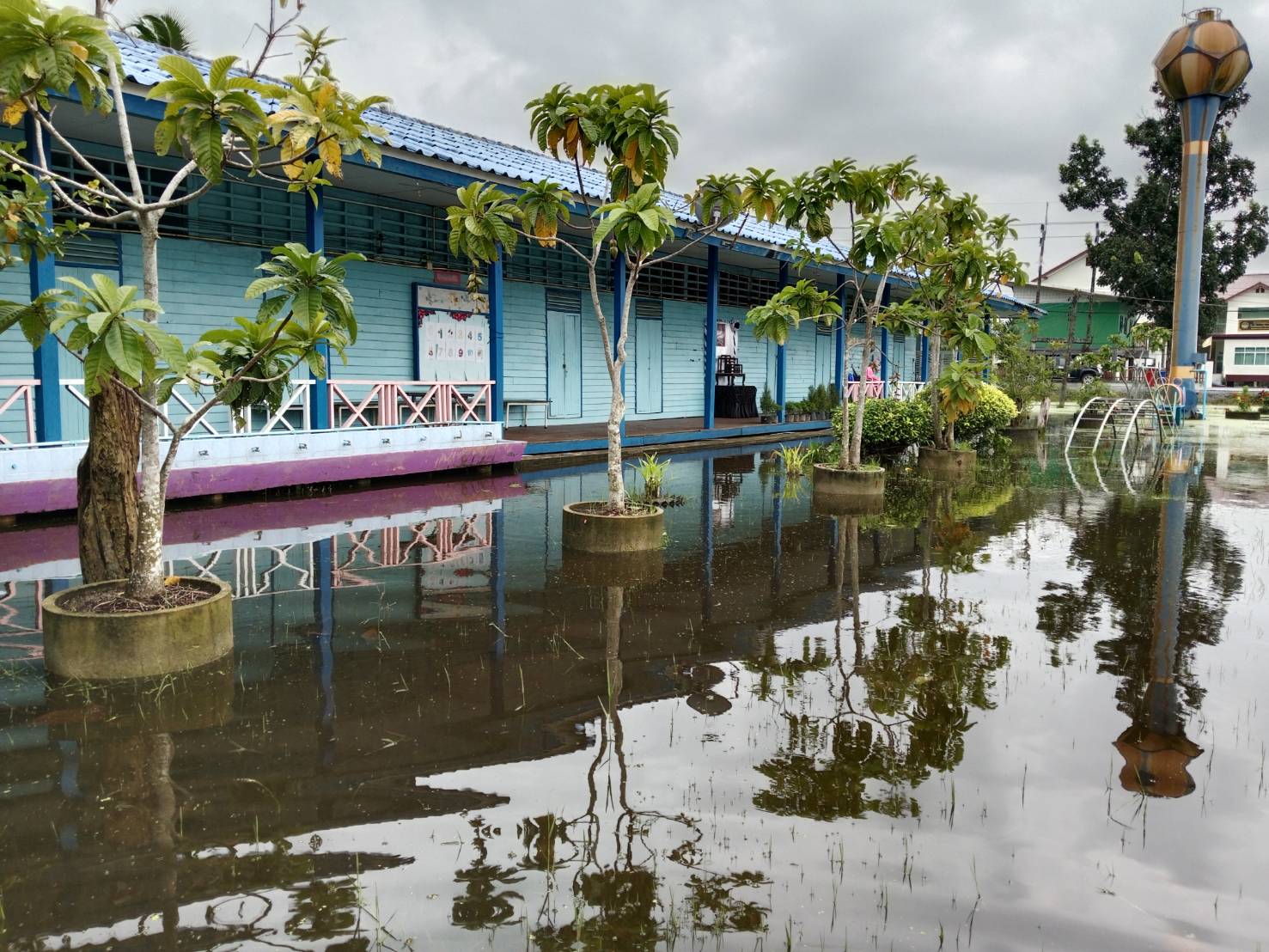 | 117 | บ้านเกาะนางโดย สำนักงานคณะกรรมการการศึกษาขั้นพื้นฐาน (สพป.นศ.3) | สถานการณ์ :- ในช่วงบ่ายของวันนี้(เวลาประมาณ14.20น.) ระดับน้ำเพิ่มสูงขึ้นมากกว่าวันที่25พ.ย. อันเกิดจากน้ำทะเลหนุนและมีลมแรง ส่งผลให้น้ำไหลเข้าห้องเรียนเล็กน้อย