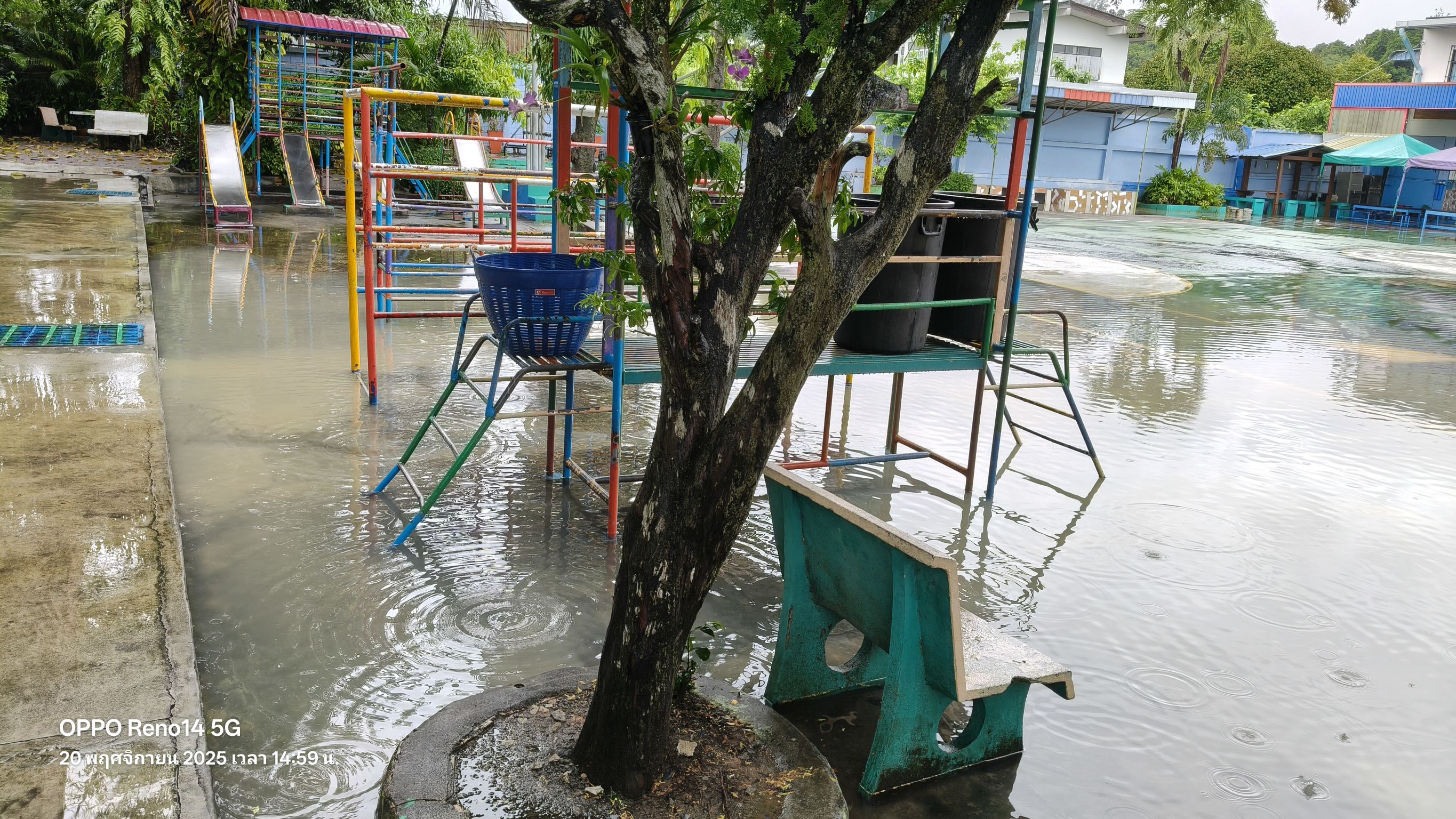 | 73 | บ้านท้องโกงกาง สำนักงานคณะกรรมการการศึกษาขั้นพื้นฐาน (สพป.นศ.3) | สถานการณ์ :- 25 พฤศจิกายน 2568 น้ำท่วมสูงในโรงเรียนจากปริมาณน้ำฝนที่ตกหนัก น้ำทะเลหนุนสูง ทำให้พื้นที่ในโรงเรียนมีน้ำปริมาณมาก
