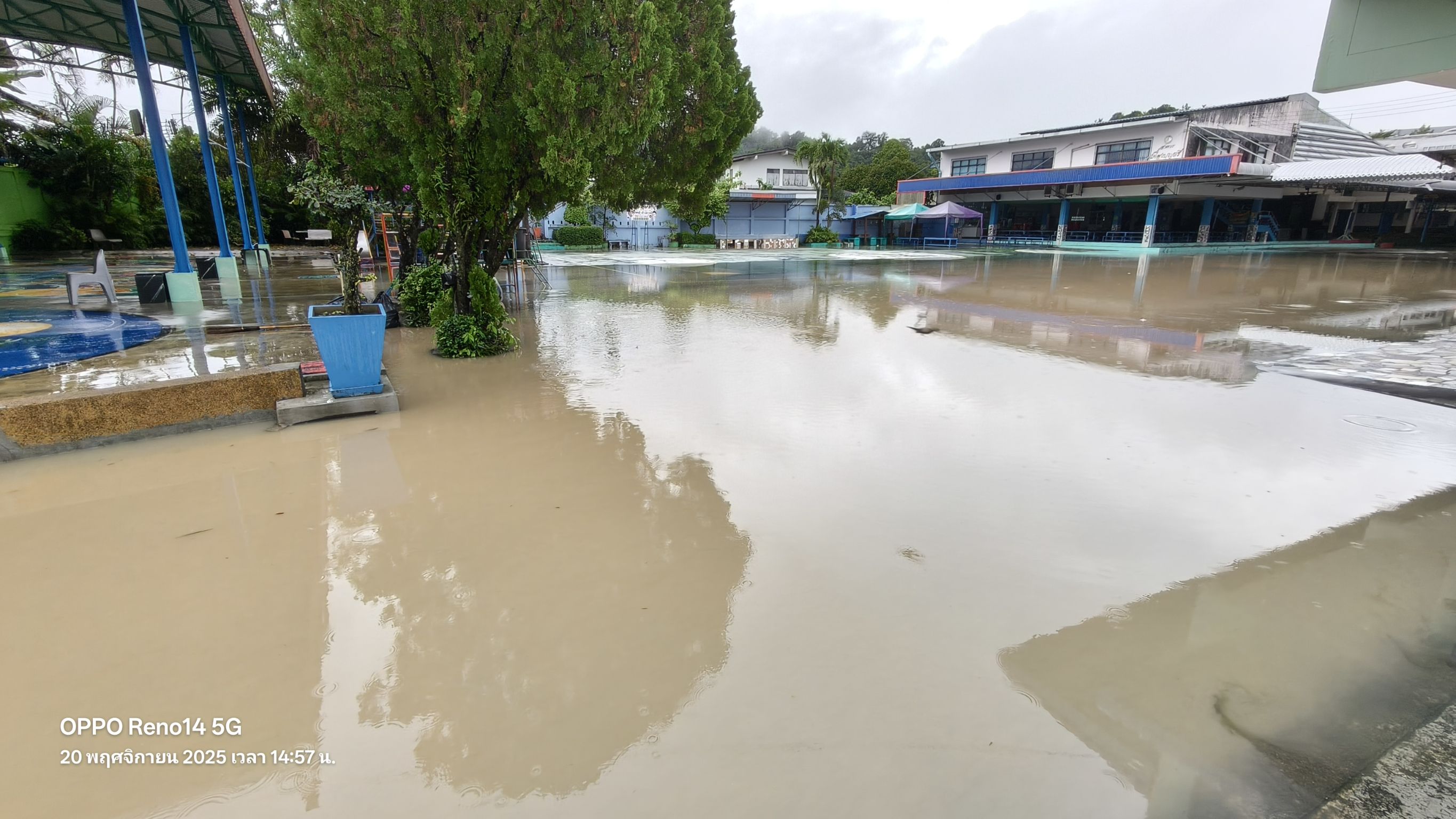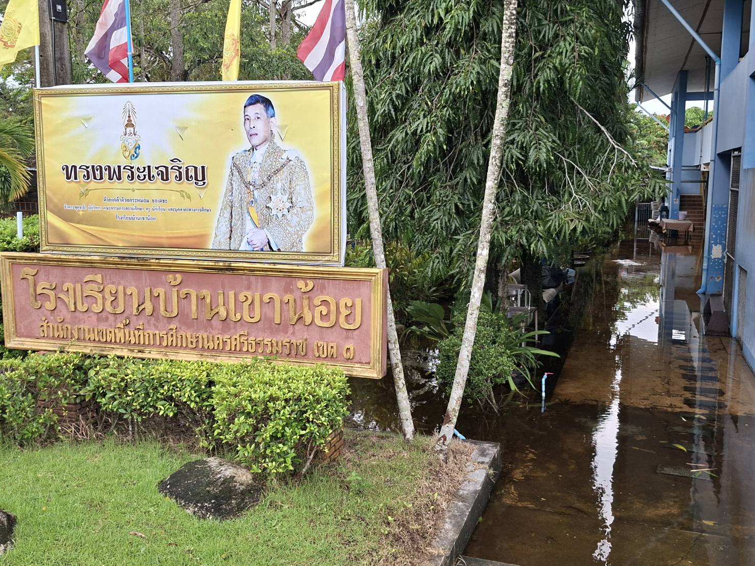 | 116 | บ้านเขาน้อย สำนักงานคณะกรรมการการศึกษาขั้นพื้นฐาน (สพป.นศ.3) | สถานการณ์ :- วันนี้มีน้ำท่วมขังบริเวณโรงเรียนและน้ำได้เิ่มปริมาณสูงขึ้นเข้าภายในห้องทำงานของโรงเรียนเนื่องจากมีฝนนตกหนักอย่างต่อเนื่อง