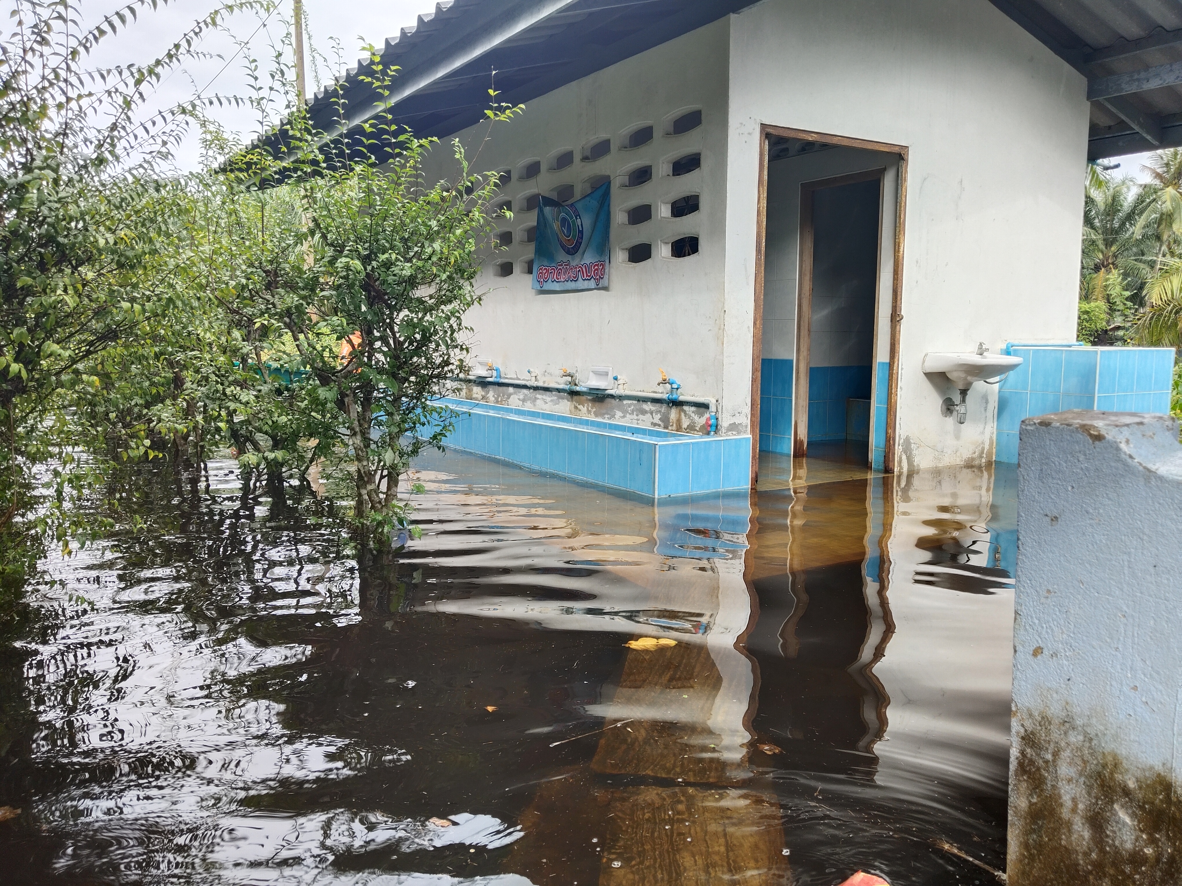 | 119 | บ้านเกาะนางโดย สำนักงานคณะกรรมการการศึกษาขั้นพื้นฐาน (สพป.นศ.3) | สถานการณ์ :- ในช่วงเที่ยงของวันนี้(เวลา12.30 น.) ปริมาณน้ำเพิ่มสูงขึ้นอย่างรวดเร็ว เนื่องจากฝนตกหนักอย่างต่อเนื่อง ประกอบกับมีน้ำทะเลหนุน ส่งผลให้ต้องให้นักเรียนกลับบ้านก่อนเวลาตามเวลาเรียนปกติ ช่วงวันที่ 24 พ.ย.ที่ผ่านมา ระดับน้ำขึ้นสูงกว่าทุกวัน ทำให้น้ำเข้าถึงห้องครัวโรงเรียน และฝ้าเพดานห้องป.2 เกิดการรั่วซึม
