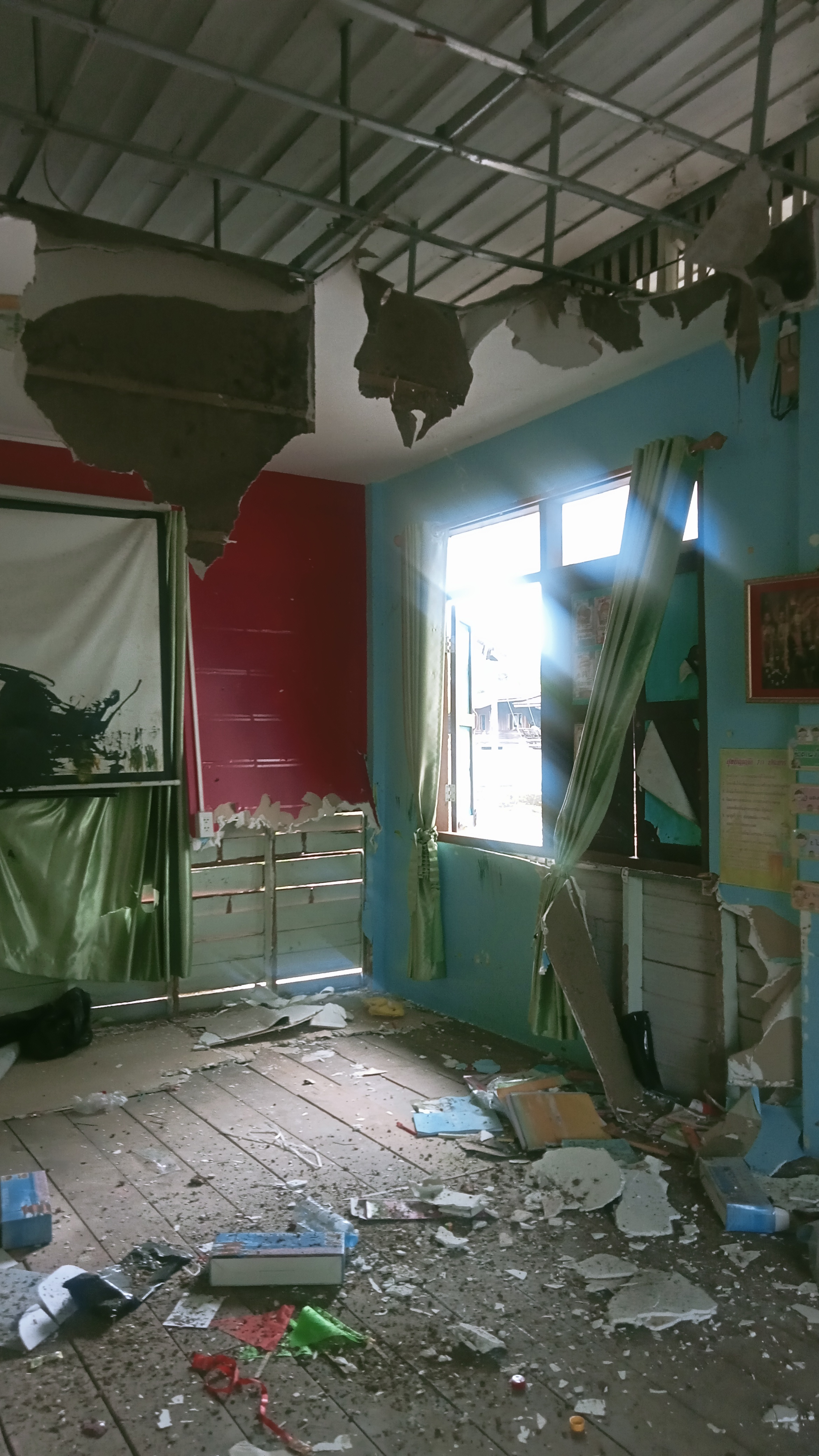 - ทำให้บริเวณพื้นที่โรงเรียนทั้งหมดและโรงอาหารได้รับความเสียหาย