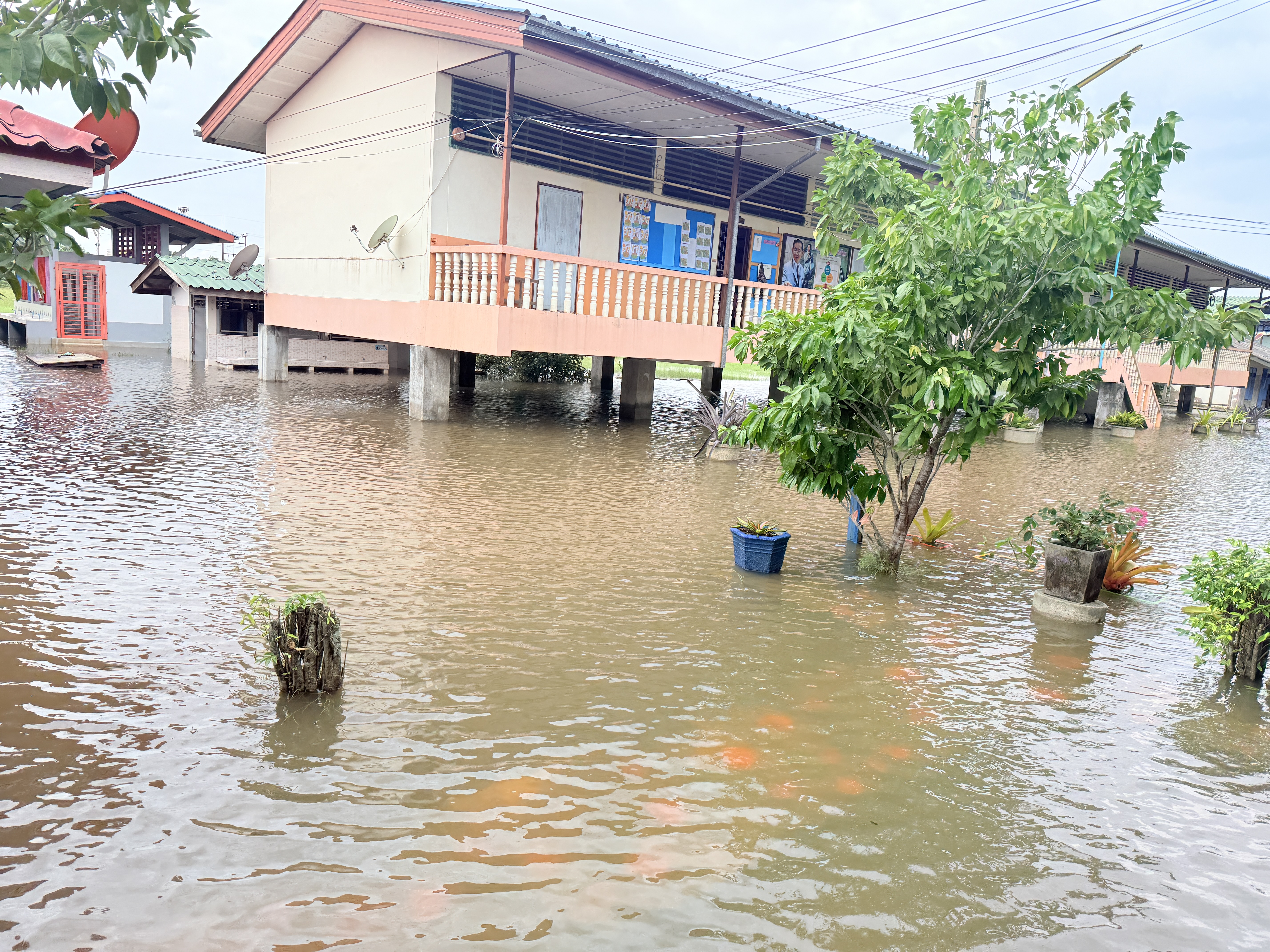 4. บ้านพักครูและบ้านของนักเรียนบางรายที่อาศัยอยู่บริเวณใกล้เคียงโรงเรียนได้รับผลกระทบจากน้ำท่วมเช่นกัน