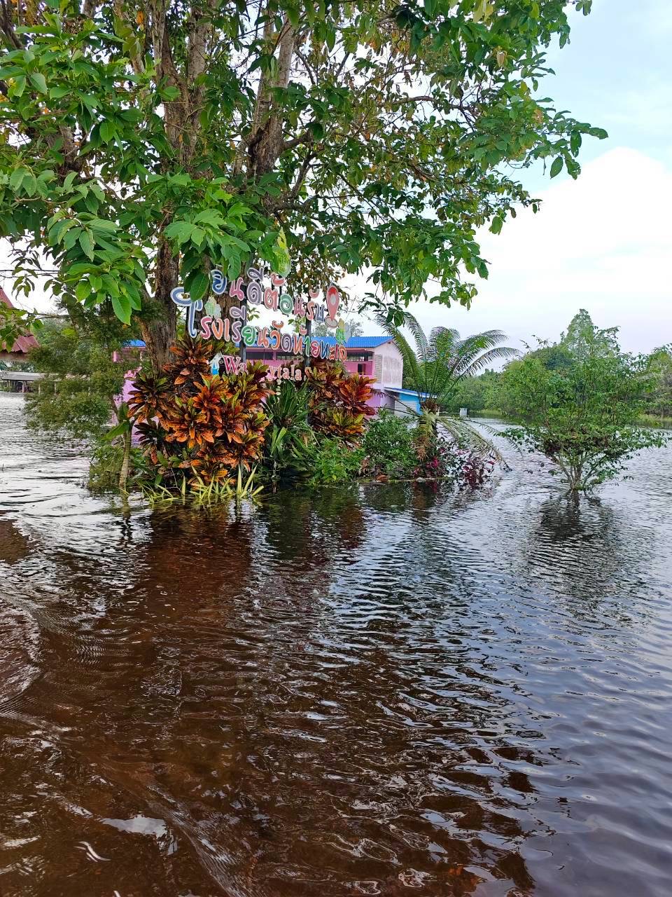 | 30 | บ้านทุ่งใคร สำนักงานคณะกรรมการการศึกษาขั้นพื้นฐาน (สพป.นศ.3) | สถานการณ์ :- วันนี้ระดับน้ำเรื่มสูงขึ้นประมาณ 70-80 ซม ทำให้ส่พื้นที่ส่วนที่สูงที่สุด มีน้ำท่วมด้วย